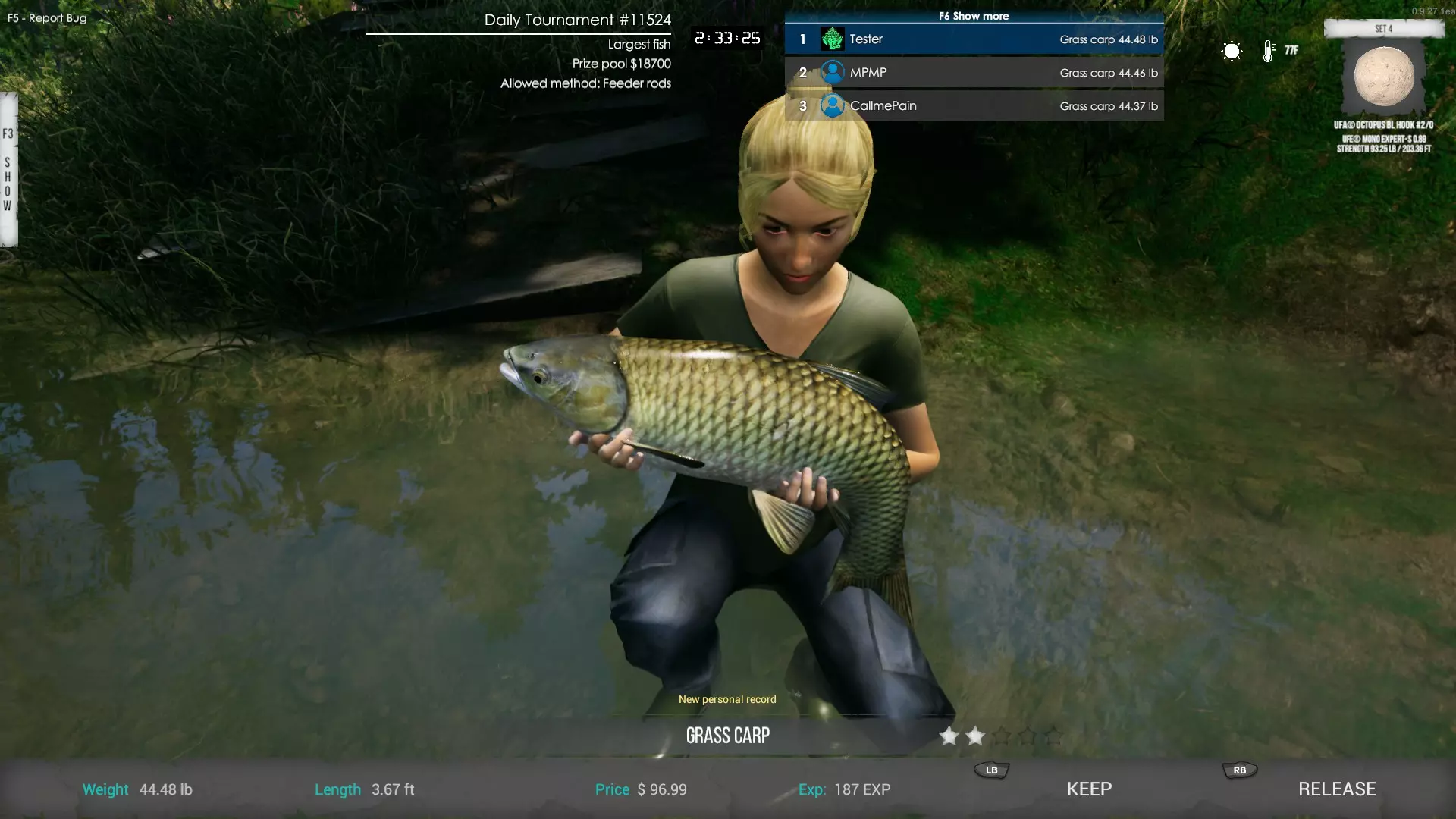 在哪里可以找到鱼饵? 蚯蚓:在草地挖掘 蛆虫:在沙地挖掘 水蛭:在海岸线附近挖掘 4. 学习基础知识 现在我们准备好开始享受我们来这里的目的——舒缓放松的钓鱼了!只需将鱼线抛出,等待鱼咬钩,然后使用WASD键向鱼游动的相反方向拉动鱼竿。当鱼疲劳时,按住鼠标左键开始收线。当它们再次挣扎时,停止收线并再次使用WASD键。你需要重复这个过程1-3次才能钓到鱼。根据使用的鱼饵和你所在的地图区域,你会钓到不同种类的鱼。