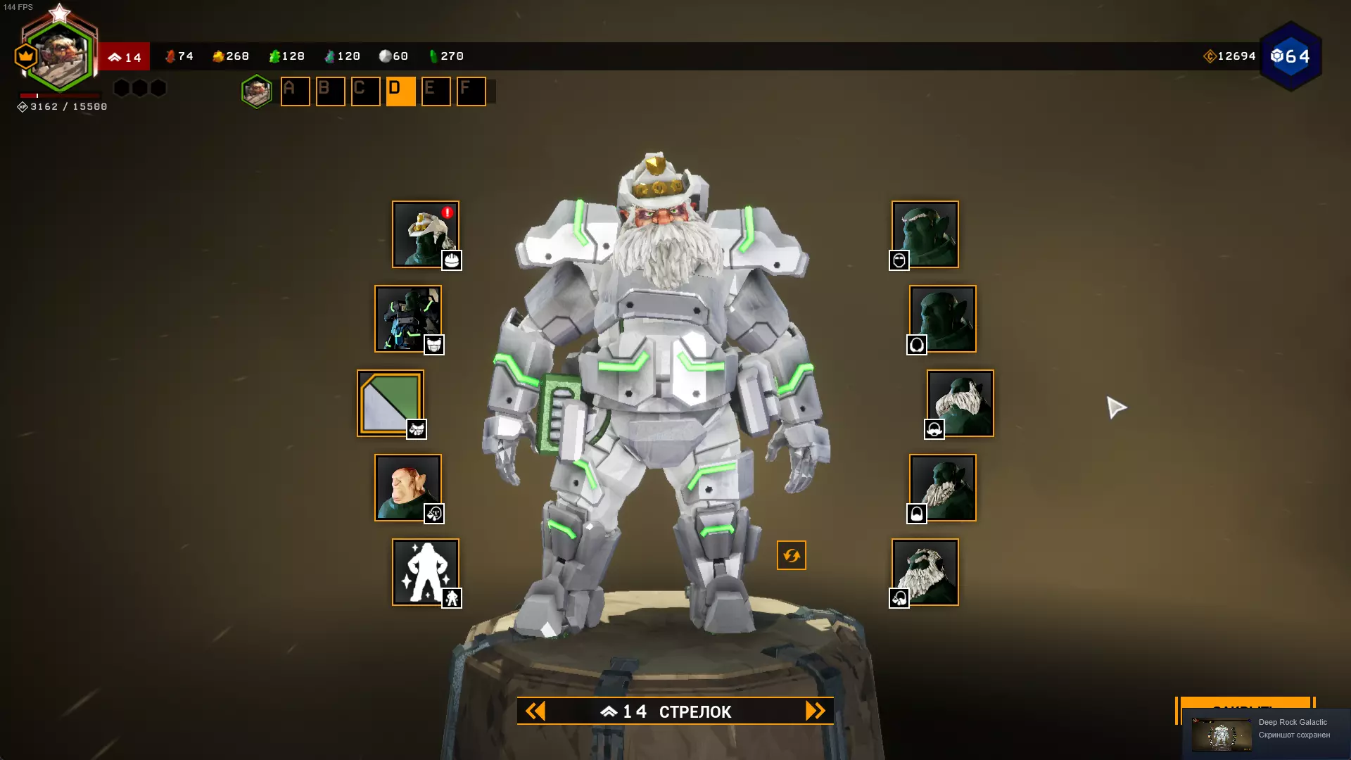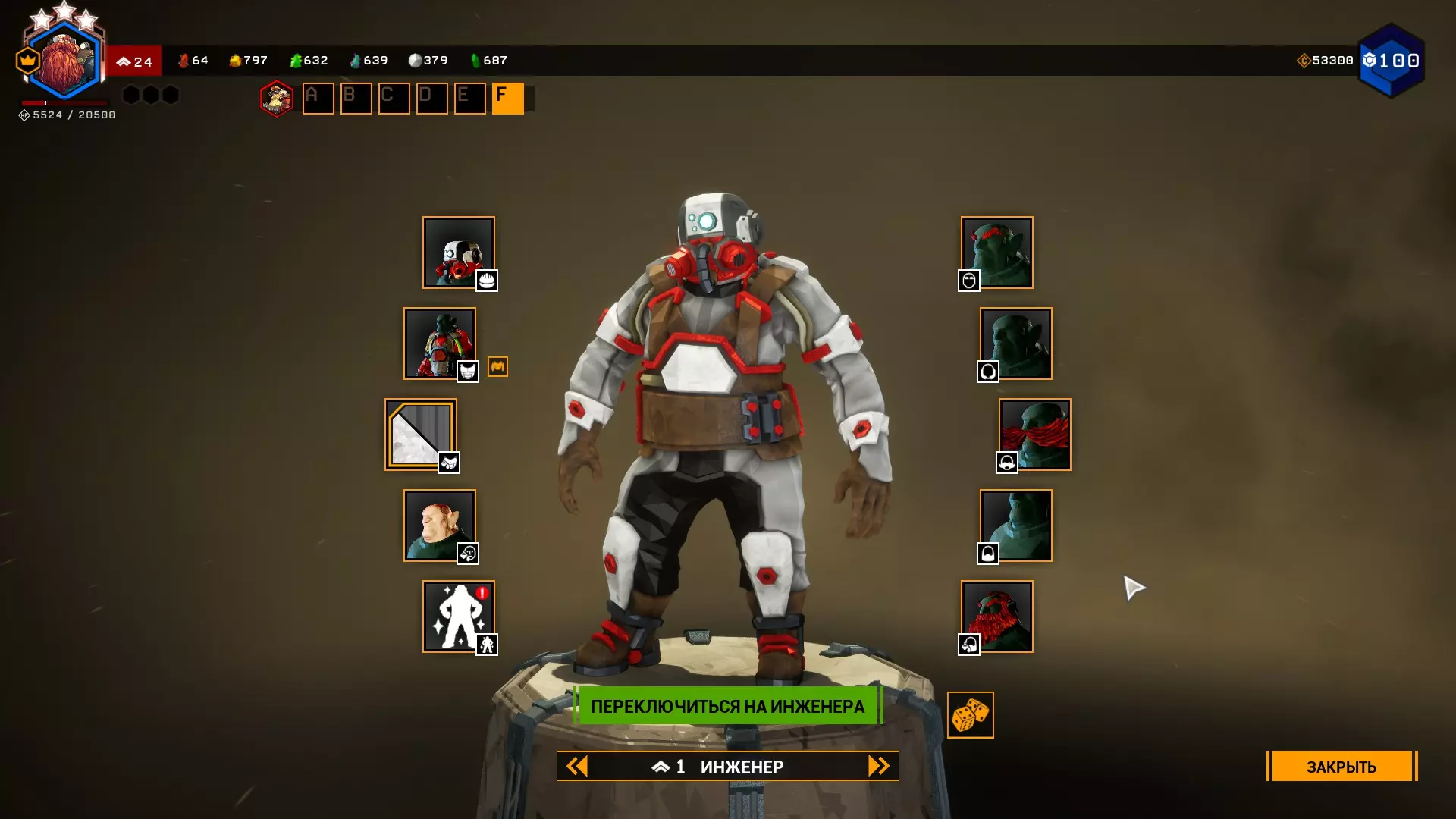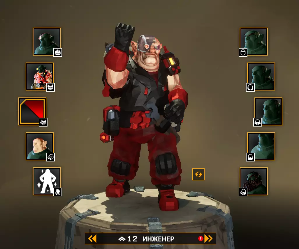 Владимир Ильич Ленин 职业 - 工程师 头部装备 - 六便士帽; 护甲 - 劳动者; 护甲颜色 - 橙色极客; 肤色 - 红润; 眉毛 - 纤细; 络腮胡 - 刮得很干净; 小胡子 - 优雅弯曲; 胡须 - 尖胡须; 发色 - 棕色。