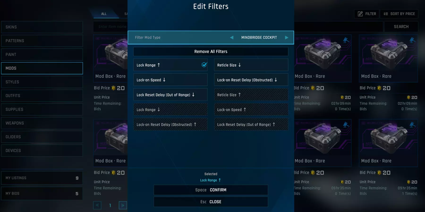 好的模组。如果紫色模组拥有理想的属性,你或许可以把它们卖给有购买意愿的人。想想人们希望他们的机甲拥有什么属性:最大EN值、最大HP值、最大FA值、锁定范围、锁定速度等等。需要注意的是,模组的属性是随机生成的,例如一个紫色的最大EN值模组的加成可能在7%-9%之间。在这种情况下,加成在8.5%-9.0%之间的模组会有更高的售出几率。你可以在市场中使用筛选功能来搜索特定属性的模组。