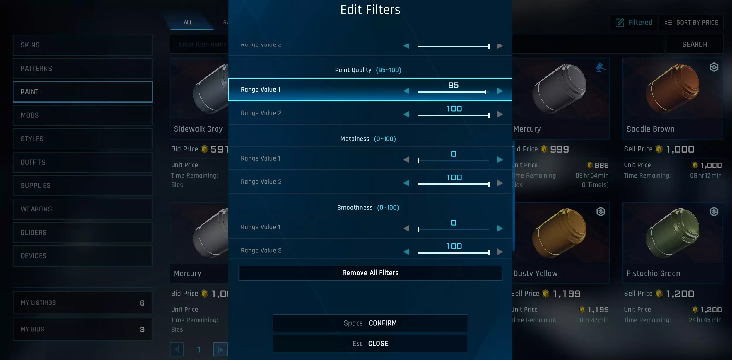 即使你没抽到心仪的服装,也能卖掉大部分物品赚取利润!记得一定要仔细检查。 完成这些后,你应该能获得足够的科莱特来购买一些模组、玛什马克武器等。但要确保**至少保留1400科莱特**,这样每周才能利用这家商店! ### 利用玛什马克获取科莱特 以下是我发现可以出售的物品,除非是顶级模组,否则不必费心拍卖: - 补给箱:目前非常畅销,价格在80-90科莱特。如果捆绑销售,价格可能更高。人们喜欢一次购买多个来碰运气,你也可以尝试抽40000科莱特的 Welkin 战斧皮肤! - 金色科莱特矿石有一些以最低价格(80科莱特)列出,但你或许可以稍微提高一点价格出售。紫色科莱特矿石也可以出售,但由于搜索结果限制为20页,务必一次只列出1个,最多2个。 黄金模组箱,每个售价300科莱特。你可以尝试开这些箱子碰运气,但我认为其概率并不值得。 武器方面,你只能出售紫色及以上稀有度的武器。大多数武器卖不出去,但有一些热门武器可以,你可以多尝试!光束自动炮是最受欢迎的武器,我保证这些一定能卖出去。 至于涂装,我个人不会捡这些,但你可以打开箱子,寻找人们想要的优质涂装。涂装的稀有度与其涂装品质相关。你可以在市场上筛选并查看玩家正在出售的物品。涂料的光滑度、光泽度和风化程度是随机生成的。品质为100的涂料售价约为8000科莱特,品质90以上的涂料售价约为2000-4000科莱特。