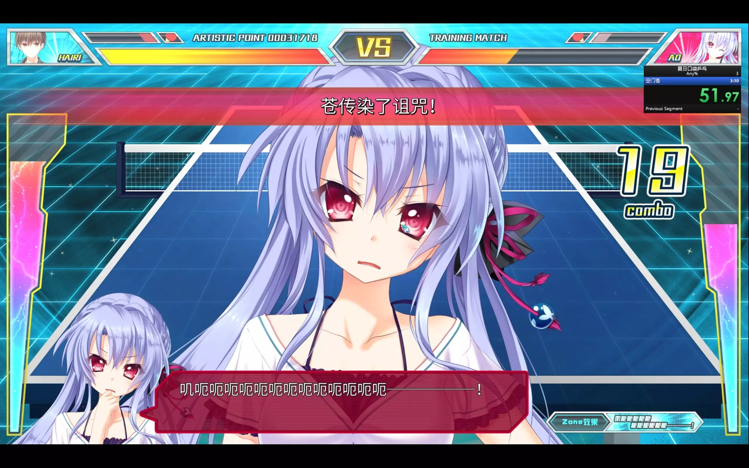 作者完成了《夏日口袋乒乓》中空门苍挑战模式的无伤速通,这里的无伤指不漏球,作者表示该模式比Any%难度高,且两者都比较看随机运气,还提到朋友或许能打破自己的速通纪录。