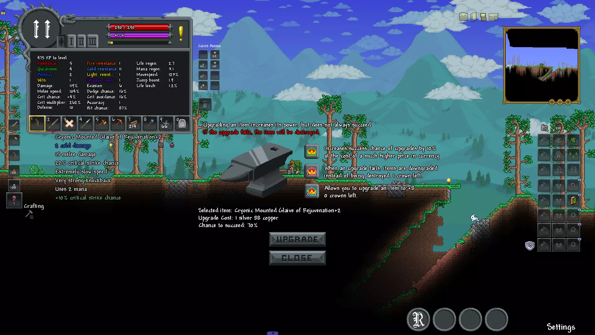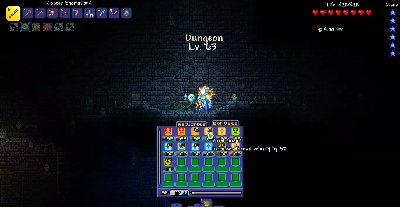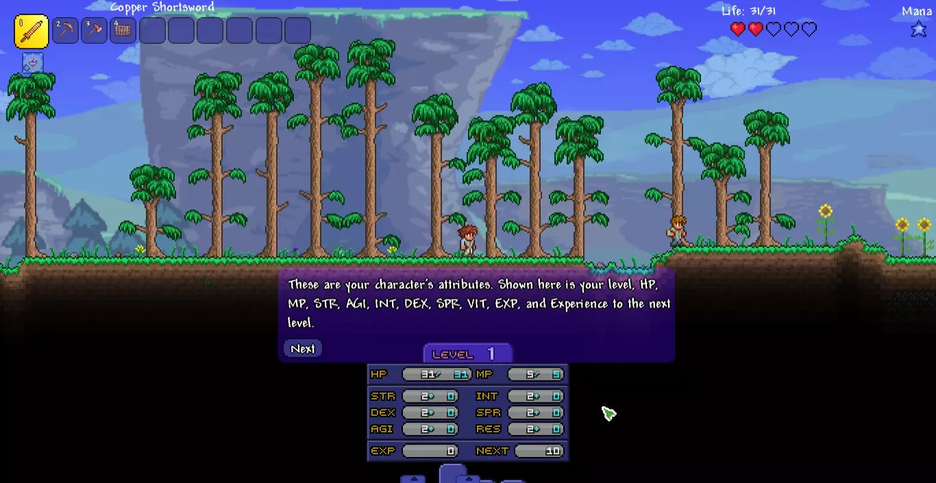 Описание: Теперь террария точно станет рпг. Новый интерфейс, 80 дополнительных слотов в инвентаре, снаряжение, которое прокачивается по мере возрастания уровня, навыки и особые способности.