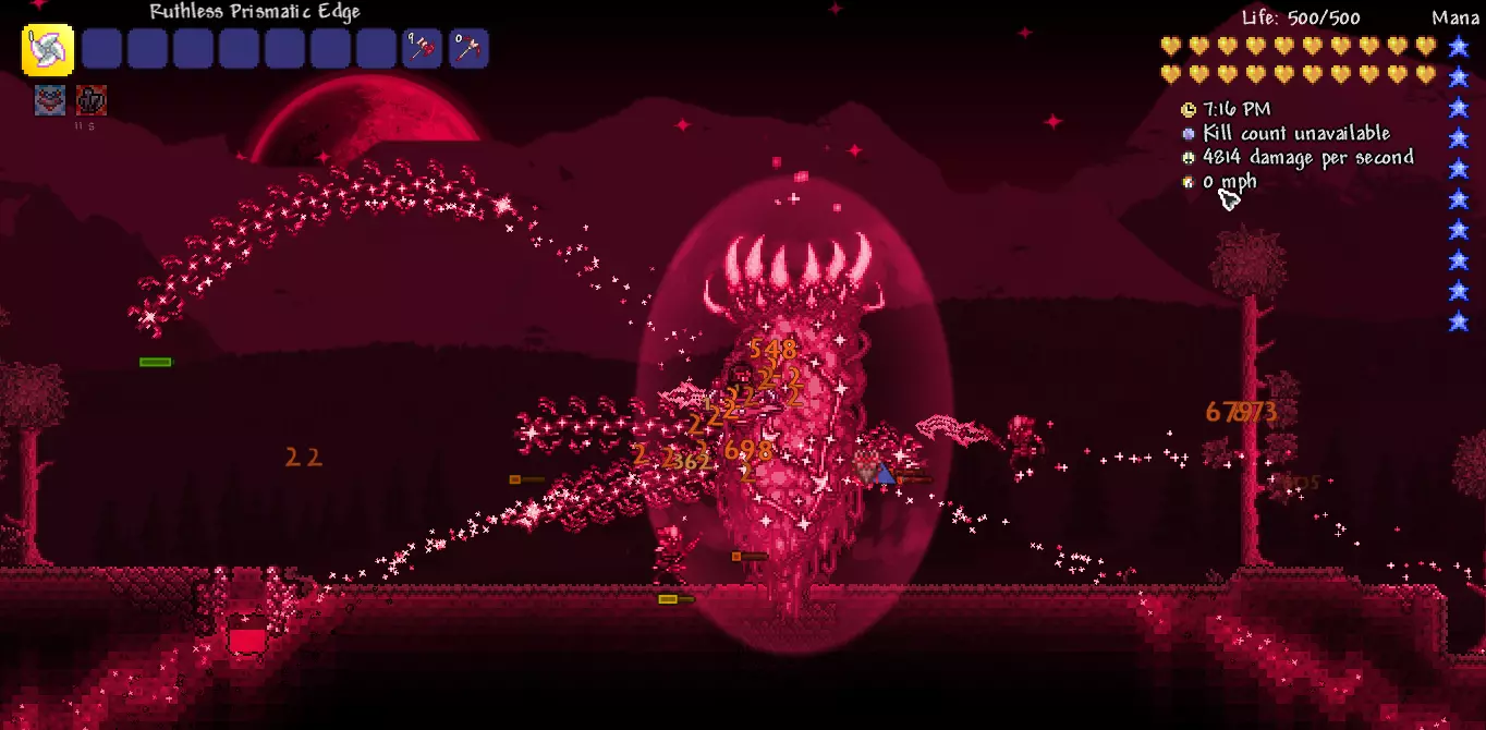 描述:新事件【星雨】,在此期间会有新的星星坠落,并且会有新的敌人向你发起攻击。击败世纪之花后,骷髅王地牢会逐渐被苔藓覆盖。此外,该模组还添加了新的迷你 Boss【史莱姆王子】,你需要在击败史莱姆王之前先战胜它。同时,洞穴中还会有一些新的怪物和武器等待着你。