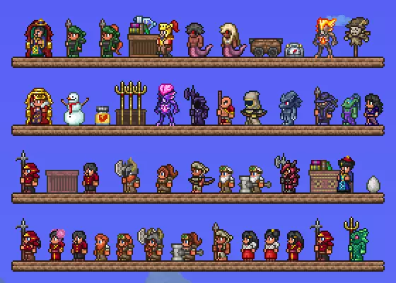 描述:该模组并非添加5个新NPC,而是将包含这些NPC的模组整合为一个完整模组。部分NPC售卖所有宝箱的钥匙,部分售卖昆虫等。此外,该模组还添加了雕像类装饰。