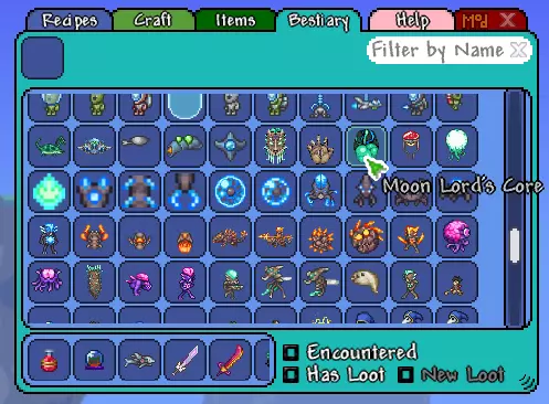描述:增强版便携指南,其中你可以查看所有合成配方、所有物品的介绍及其掉落来源,还有怪物和 Boss 的图鉴。建议优先安装。