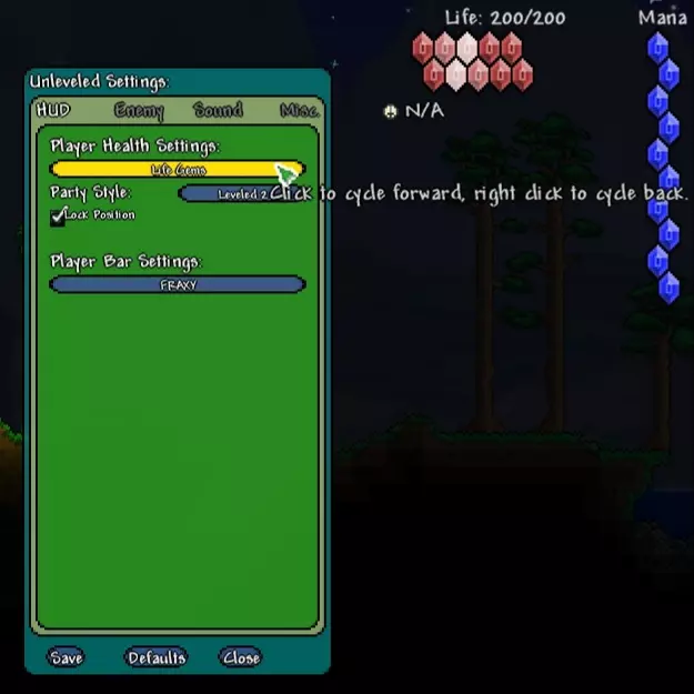 描述:允许将生命值和魔法值的形状更改为更有趣的样式。为此,请在聊天中输入命令:/Unleveled。
