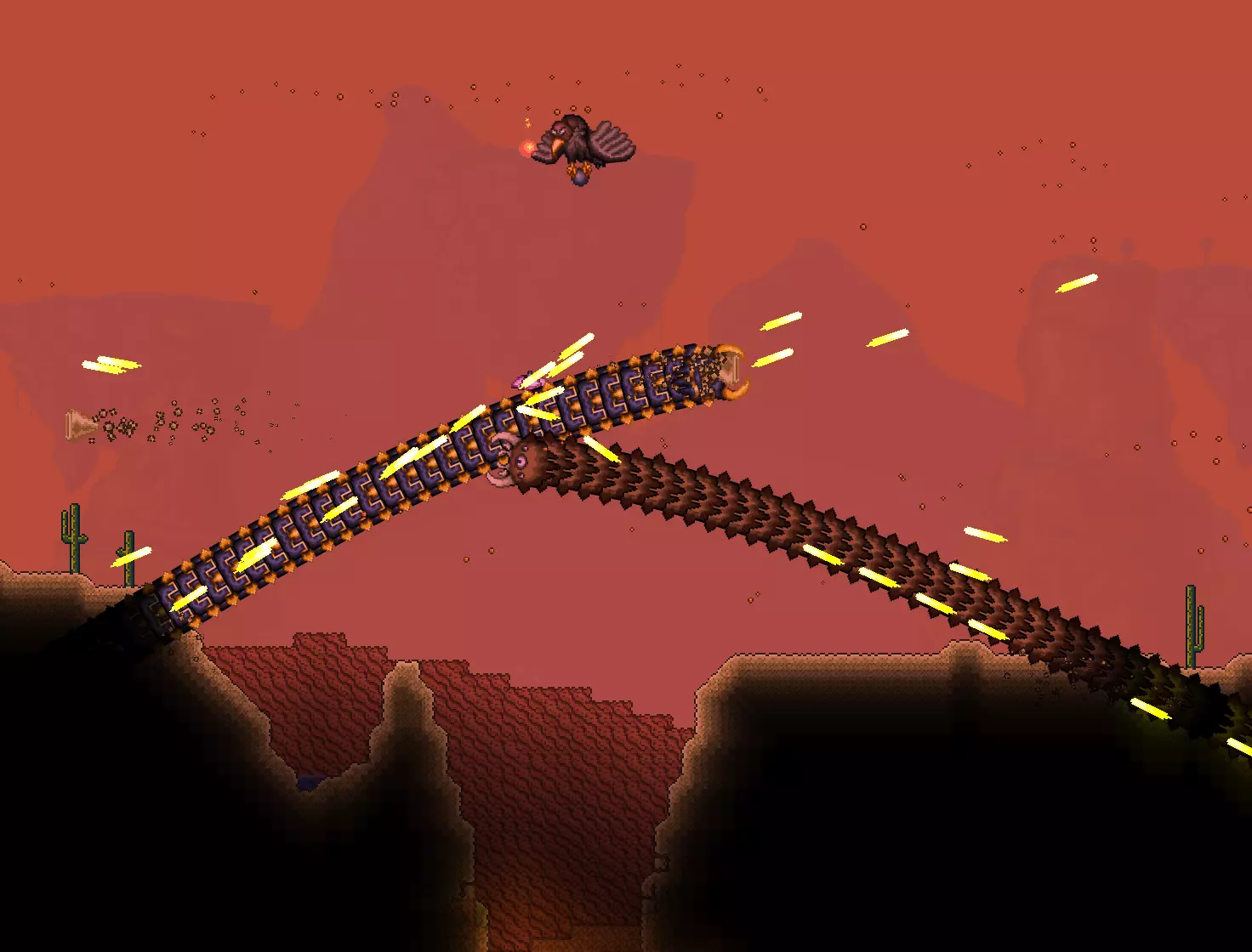 描述:我该说点什么呢?好吧。 灾厄(Calamity)——这个模组将彻底颠覆你对《泰拉瑞亚》的所有认知。具体来说:新增多种难度、生物群系、建筑结构,大量原版游戏修复,有趣的NPC(主要是一位售卖酒类的公主),恐怖的迷你Boss、怪物,极其出色的 soundtrack,以及用于击杀Boss的庞大武器库。说到Boss,该模组添加了数量众多的Boss。它们无法用言语描述,必须亲眼目睹。此模组还新增了一个职业——【强盗】。它是计量器的类似物,但与计量器不同的是,这个破坏者有内容和未来。 嗯……我显然忘了说什么。啊?你们都看到这段了,还没去安装这个模组吗? 补充:若要使用新的音轨进行游戏,您需要安装Calamity Mod Music。 截图: