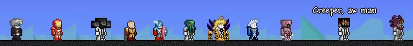 描述:你觉得原版宠物还不够多?那来看看这数不尽的新宠物吧!从动漫角色到南瓜应有尽有!还有新Boss——洗衣机、艾萨克以及其他众多Boss。大量可制作或从新NPC处获得的装饰和画作。这个模组包含了如此多的彩蛋,简直本身就是一个巨大的彩蛋合集。
