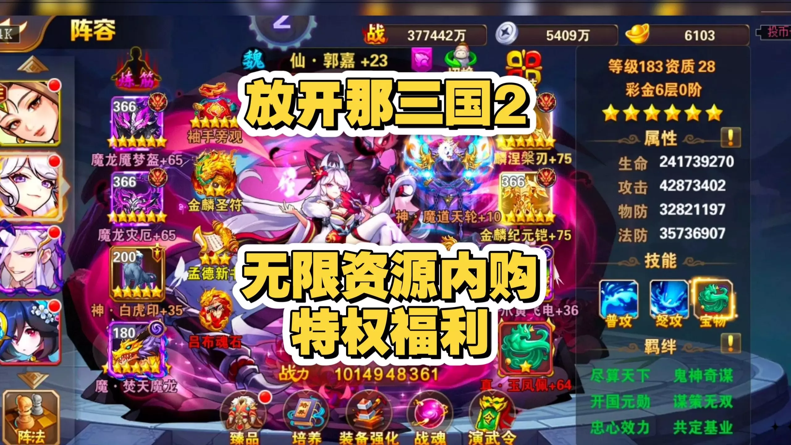 虽然平民玩家受资源所限不能够将所有的武将招致麾下,但我们却可以按照武将的特点来选择适合自己的武将加以培养。