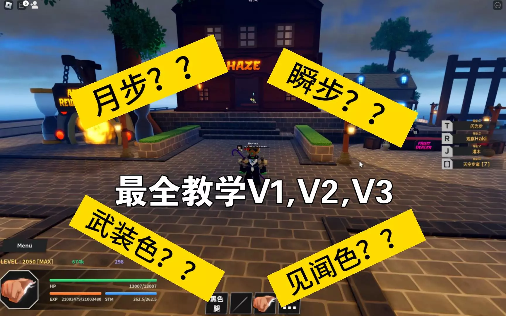 这是Roblox海贼王Haze Piece的玩法教程,为玩家讲解月步、瞬步、武装色、见闻色v1到v3的学习方法,帮助玩家掌握这些战斗技能,提升游戏战斗能力。