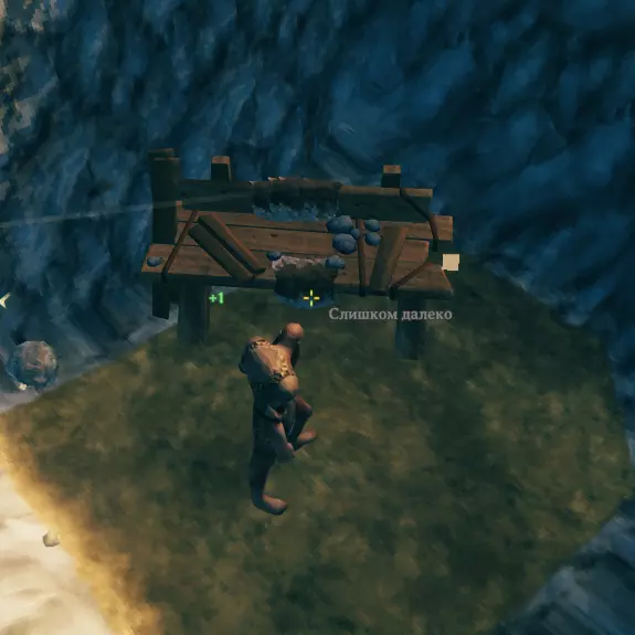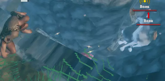 - 重要!以下操作需要非常迅速 - 一旦到了夜晚,我们就跑向山里寻找狼(不要靠近它们!用眼睛寻找!) - 找到一只或多只狼后,我们向它们的方向射箭,如果狼开始朝我们跑来,我们也必须这样做:跑向坑并跳到柱子上