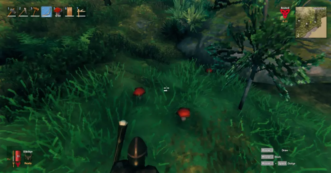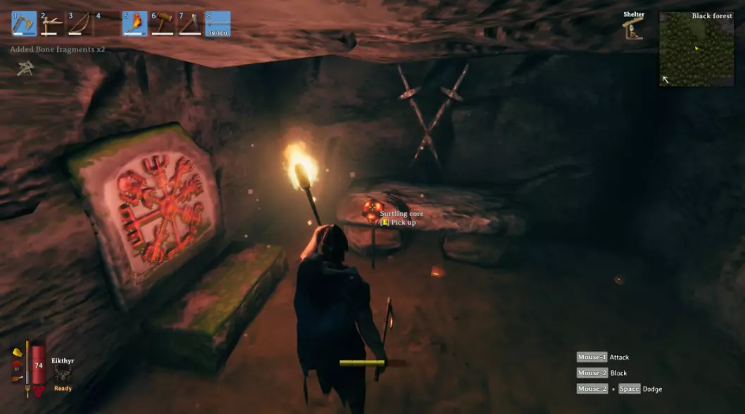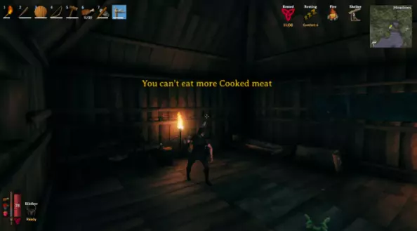 你的角色现在可能饿了。幸运的是,瓦尔海姆中的覆盆子灌木丛、蘑菇和动物并不难找到。不过有一个需要注意的小技巧:你不能连续吃同一种食物。 显然维京人很在意饮食多样化,所以你可以同时吃1个覆盆子和1个蘑菇,但不能吃2个覆盆子。你需要等到屏幕左下角的食物图标开始闪烁或消失后,才能再次吃这种食物。 8) 找到并击败瓦尔海姆的第一个 boss 【Eikthyr】