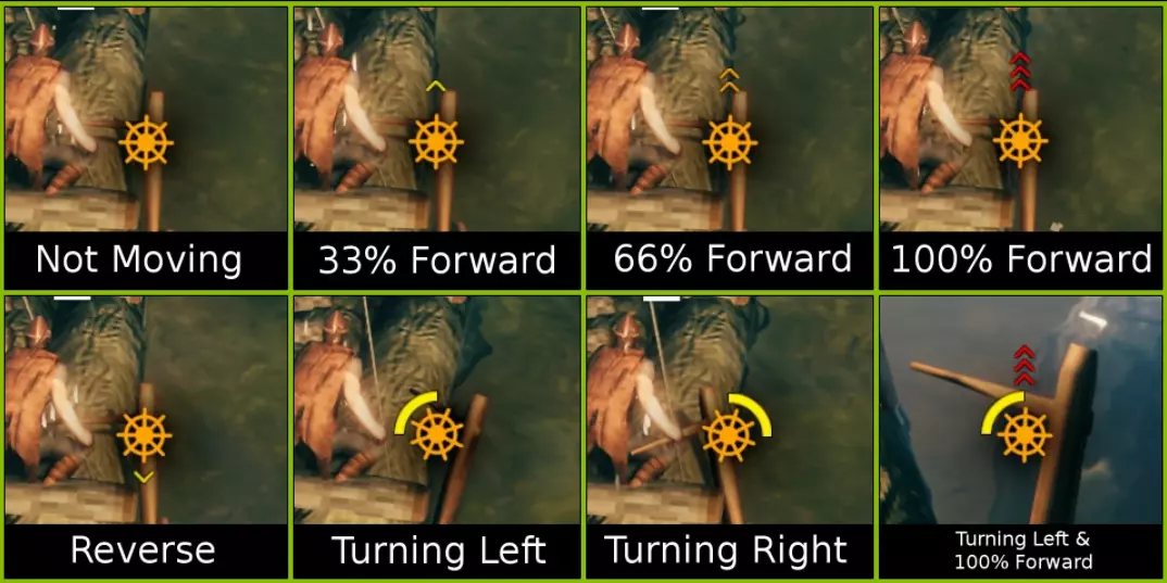 如何使用《英灵神殿》木筏 使用《英灵神殿》的木筏一开始可能感觉不太直观,但一旦理解了基本原理就会豁然开朗。首先,你可以使用W和S键让木筏前进或后退。你也可以使用A或D键来左右转动船舵。这些操作都会如上图所示显示在HUD界面上。 不过,问题在于木筏主要靠风力驱动。如果风是朝着你想要移动的方向吹的,那你就会原地打转,无法快速前进。