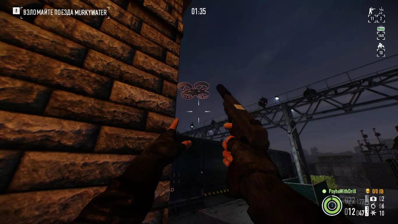 请注意,这里出现了摄像头无人机。它们只有在悬停在空中且打开灯光时才处于激活状态,移动时灯光和摄像头都会关闭。你可以通过嗡嗡声注意到它们。如果你摧毁无人机,它会继续悬停在空中并移动,但可能会被安保人员发现并引发警报。完成巡逻路线后,无人机将停靠在车厢上并自行修复。