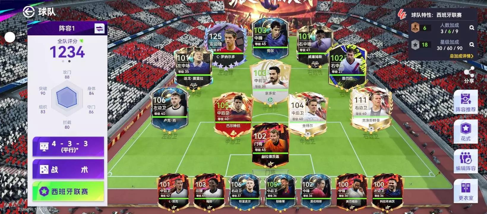 球会的阵容