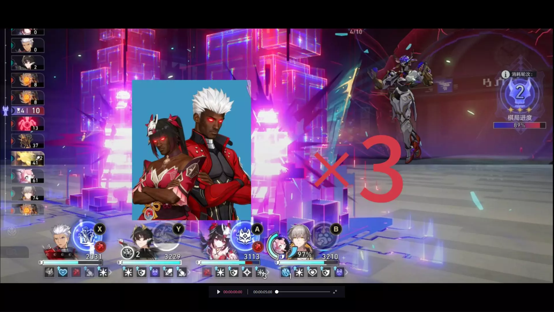 崩坏:星穹铁道混沌回忆怎么配队,星穹铁道4.1版本「混沌回忆・演剧终焉」更新!底层关卡为天谴之矛与马芙马,老熟人回归,此前能通关的老阵容本期依旧可考虑,配队选择较多。接下来分享玩家冻梨带来的本期混沌的完整应对思路与配队推荐。 《崩坏:星穹铁道》混沌回忆・演剧终焉满星攻略: 一、环境分析 我方目标攻击后获得1个笑点,会在行动条激活阿哈时刻跑条,并为【记忆紊流】增加对应点数充能,至高20层。轮次开始时,消耗充能对敌方全体造成真实伤害。 没有对体系或伤害类型的需求,任意角色都可叠层。对于非0T玩家,环境伤害可为你贡献数百万输出,拔高了输出下限。 二、其十二上半 优势属性「雷>量子>冰」,优势类型对单伤害、高频多动队伍。 第1波,可反复重开凹“全自动魔仙棒”的魔咒效果,随机触发1种,提升敌方攻击(适合烧血体系)/拉条敌方(天谴先锋更快召唤小怪有更多破甲回能)/推条敌方(无生存玩法)。 破甲“天谴先锋”会扣除它15%最大生命值并恢复一定能量,且每次受击都额外扣除3%最大生命值,可留给辅助或副C多消耗。 主C角色全力处理“咆哮灵柩”,无任何奖励的纯负面怪,容易控住一些技能都以队友为目标的纯辅助角色,影响你的输出轴。 第2波,看你队伍情况,若能在“天谴之矛”行动前,连续攻击7次破甲(看行动条判断),则全力爆发,反之则留技能等待它召唤“矛尖”。 每个“矛尖”会有对应角色的虚影,我方角色攻击对应“矛尖”会有伤害增幅,消灭后BOSS扣除13.5%最大生命值,同时解除自身半血限制。若选择直接攻击BOSS本体,则在战甲破除之前有10%/30%减伤,对伤害要求较高。 【配队推荐】 遐蝶+长夜月/记忆主+缇宝/昔涟+风堇; 不死途+飞霄/星期日+缇宝/记忆主+腾荒; Archer+花火+缇宝/记忆主+腾荒; 长夜月+昔涟+记忆主+风堇; 大黑塔+那刻夏/小黑塔+缇宝+腾荒; 阿格莱雅+昔涟+星期日+腾荒; 2魂黄泉+海瑟音+缇宝/花火+腾荒。 三、其十二下半 优势属性「虚数>火>物理」,优势类型弹射/扩散伤害队伍。破晓战队·苍翼80%量子抗性、卡芙卡40%雷抗性,使用对应属性主C需注意自身配置练度。 第1波。“破晓战队·苍翼”会在第2次行动时开启力场,锁弱点、受量子伤害立即行动、强化输出,可通过7次攻击破除力场,使其30%易伤、量子抗性变为40%。 建议击破队优先处理“破晓战队·苍翼”,直接推条集火输出,避免后续它锁弱点拖慢对局。其他队伍则优先处理“摇滚狂徒”,欢愉队若能让阿哈时刻在它蓄力阶段触发,则可打断并添加易伤,其他队伍正常打即可。 第2波,“卡芙卡”与左右“月夜天马”的组合,也常被玩家称为“马芙马”。对局中“卡芙卡”会拉条我方单体并有大概率使其陷入支配状态,“月夜天马”则是通过给角色叠加2次欧洛尼斯印记,触发纠缠控制效果,搭配解控/免控辅助最优。 由于是双天马组合,行动条挨着,连续挂标记控制频繁,能够优先处理掉任意一只“月夜天马”都会好打许多。 【配队推荐】 银狼LV.999+火花/花火+爻光/欢愉主+藿藿/腾荒; 万敌+昔涟+缇宝/记忆主+风堇; 火花+爻光/缇宝+花火+腾荒; 流萤/乱破/波提欧+大丽花+忘归人/阮梅/同谐主+灵砂/加拉赫/同谐主; 绯英+爻光/欢愉主+记忆主/星期日/缇宝+藿藿; 白厄+刻律德菈+花火+昔涟/腾荒/星期日/布洛妮娅; 海瑟音+卡芙卡+黑天鹅+藿藿/腾荒; 遐蝶+长夜月+缇宝+风堇; 那刻夏+刻律德菈/花火+昔涟/记忆主+腾荒。 四、结尾 这期混沌回忆血量高,想要打0T需要队伍中高配置,若只想满星拿满星琼奖励倒是不难,环境伤害帮你把血量“砍”了一截。 评价,难度适中。