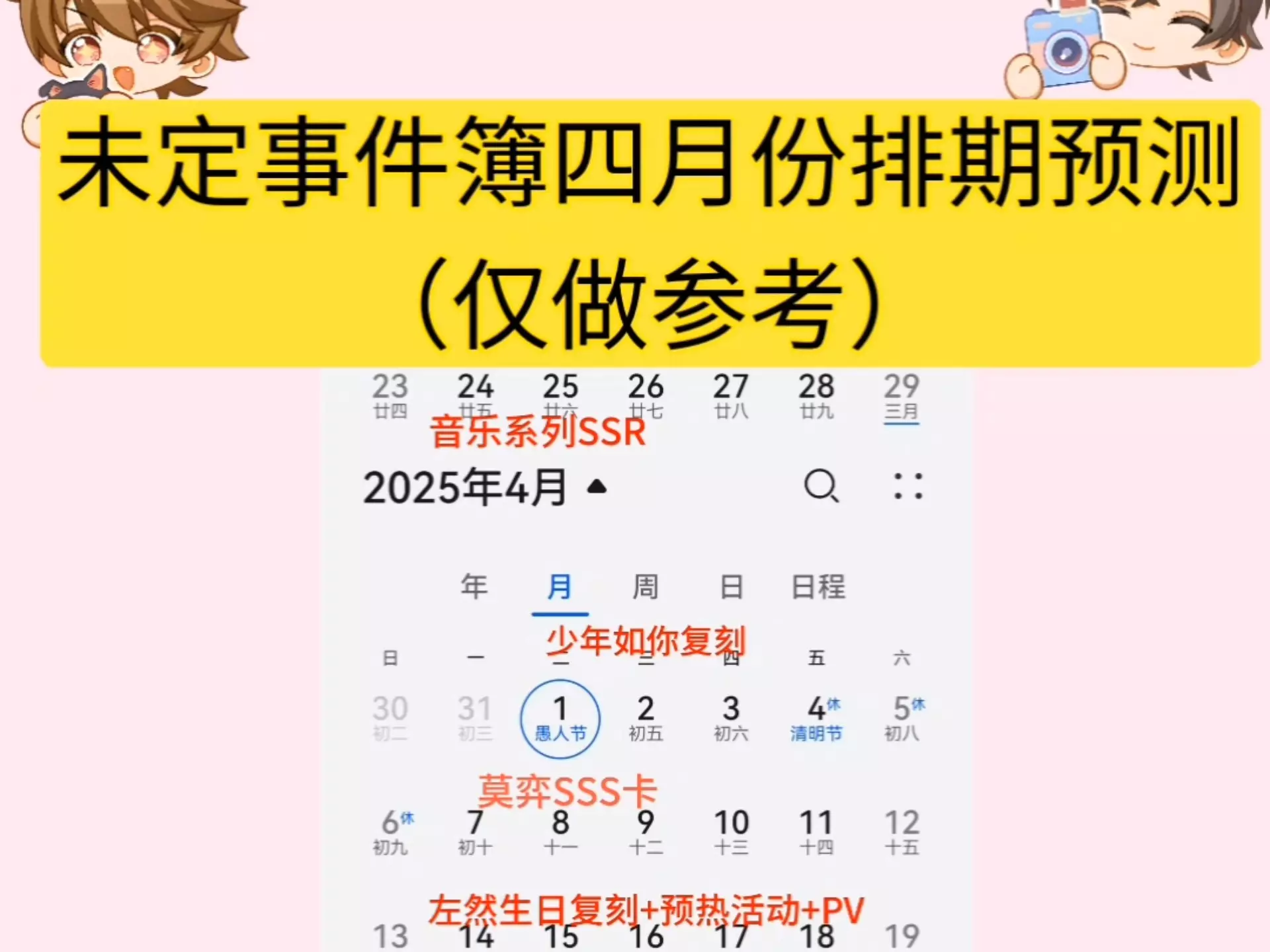 《未定事件簿》2026.4限时活动「心语启扉·莫弈篇」上线,包含该活动全剧情、莫弈SSS卡【正是春留处】卡面及相关剧情,该卡涉及莫弈和家人的关系内容,填补了相关设定空白。
