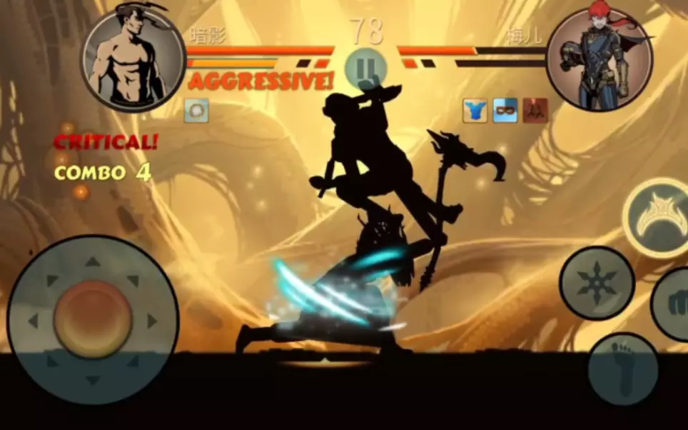 这是RPG游戏《暗影格斗2》的对战内容,展示了满级角色“暗影”回到新手村与忍者等对手多回合对战的过程,战斗中出现暴击、先手攻击等战斗提示,呈现了精彩的格斗场景。