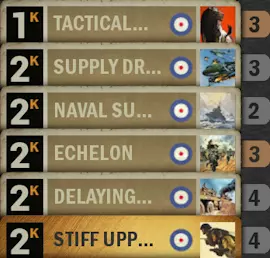 使用【包围】同时消灭5个单位 在战斗中解锁 提示:要达成此成就,你需要拥有德国的【包围】能力。如果没有,可以通过部署德国步兵15【侦察】获得。 在激活该对抗手段前,前线必须有4个单位,这样在下一回合,敌人会通过激活对抗手段移动最后一个单位。 最适合使用带有牵制命令以及能够摧毁支援线上多余敌方单位的火炮/战斗机/轰炸机的卡组。 【后勤专家】