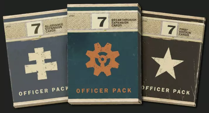 常规包和军官包 忠诚套组包含来自5个主要国家(德国、英国、苏联、美国和日本)以及2个同盟国(法国和意大利)的卡牌。这是第一个扩展包。 该套组中的卡牌总数:150张(5×22 + 2×20张)