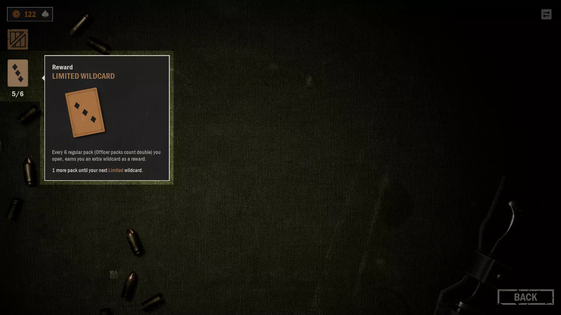 打开卡包时获得的特殊卡牌 3. 每打开第6个卡包 每打开6个卡包,您将获得一张额外的特殊卡牌。军官包算作2个卡包。获得的特殊卡牌稀有度会按以下顺序循环变化: 限定>限定>特殊>限定>限定>特殊>限定>限定>精英>新循环 这些额外的特殊卡牌始终是通用的。将鼠标悬停在屏幕左上角的特殊卡牌图标上,您可以查看距离获得额外特殊卡牌还有多近。