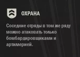 护卫 护卫单位需要尽早部署。部署护卫单位的速度越快,就能更久地保护你的指挥部。护卫单位会掩护同线上相邻的友方单位,迫使敌人优先攻击自己。说实话,它就是战场上的【肉盾】,用来保护重要且脆弱的单位,让它们能存活得更久。不过,护卫无法防御指令、炮兵和轰炸机的攻击。但你已经知道,可以通过将战斗机部署到航线上来掩护单位免受轰炸机的攻击,而命令可以用反制措施来抵消,至于炮兵则无法防御(我都说过了,这些家伙可没什么底线)。