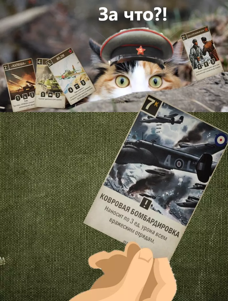 战线的占领不一定是关键!说来奇怪,在这场战争中,即使没有【紧密接触】也能获胜。只需组建一套包含航空单位和大量指令的卡组就行,但要知道,作者并不认可这种战术!而且类似的“紧密接触”也不被认可,不被认可……尽管我们都明白,作为经验丰富的战地指挥官,我们的职责意味着要在前线接触线上与敌人进行周期性的接触。 永远铭记那些未能抵达敌军指挥部、永远留在前线的战士们……