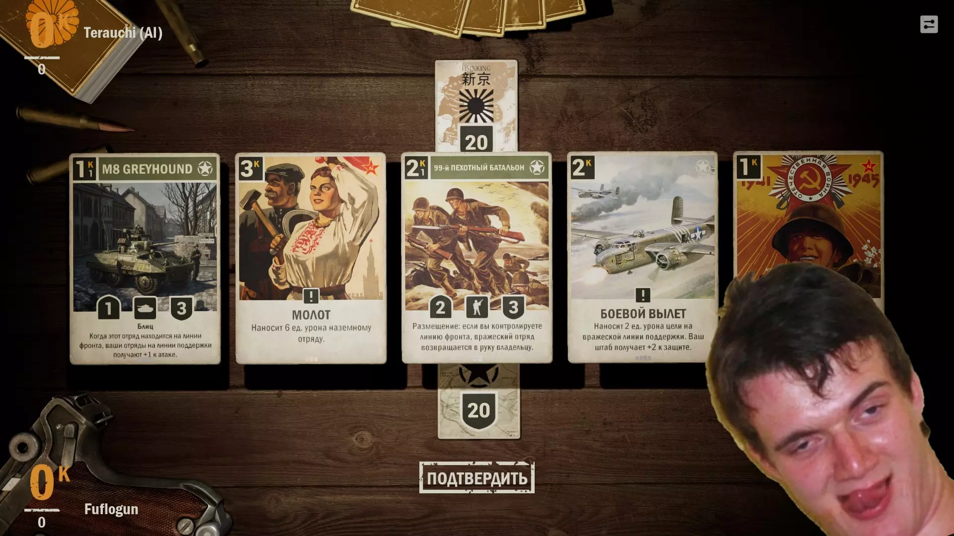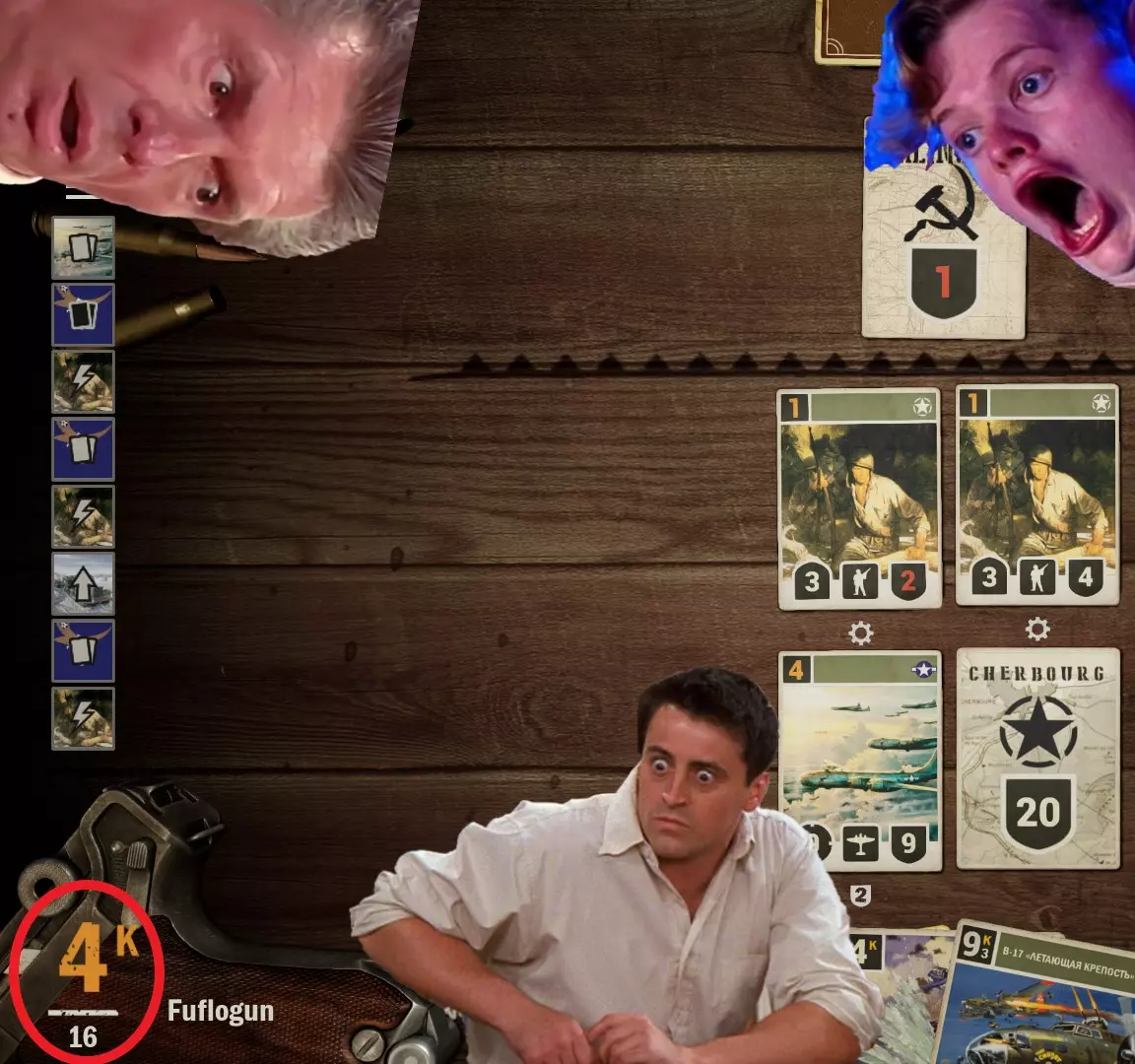 卡牌、桌子、两名玩家 朋友们,这可不是什么犯罪行为,只是一场“军队式”的公平卡牌游戏。 我想向大家介绍一下我们的游戏桌,具体包括: 它究竟是什么样的 如何在这里施展巧妙的战术策略 我的部队该部署到哪里? 那么! 坐在你对面的将是人民的敌人、卑鄙的资产阶级——一位受人尊敬的社区成员,他和你一样,都是来体验这场精致卡牌对局的。战场,也就是游戏桌,分为三个区域。