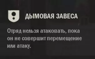 烟雾屏障 该效果作用于单位时,处于烟雾屏障状态的单位无法被场上单位攻击,直到该单位所在部队开始移动或率先开火,此时烟雾屏障效果消失。不过,可以通过指令来对抗这些单位,烟雾屏障无法抵御指令效果,也无法抵御单位部署时产生的效果(相关内容后续说明)。