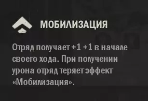 动员:该效果使你的部队在每个回合开始时获得+1攻击和+1防御,但此效果仅持续到部队受到伤害为止,因此请用护卫或烟雾弹保护这类单位!