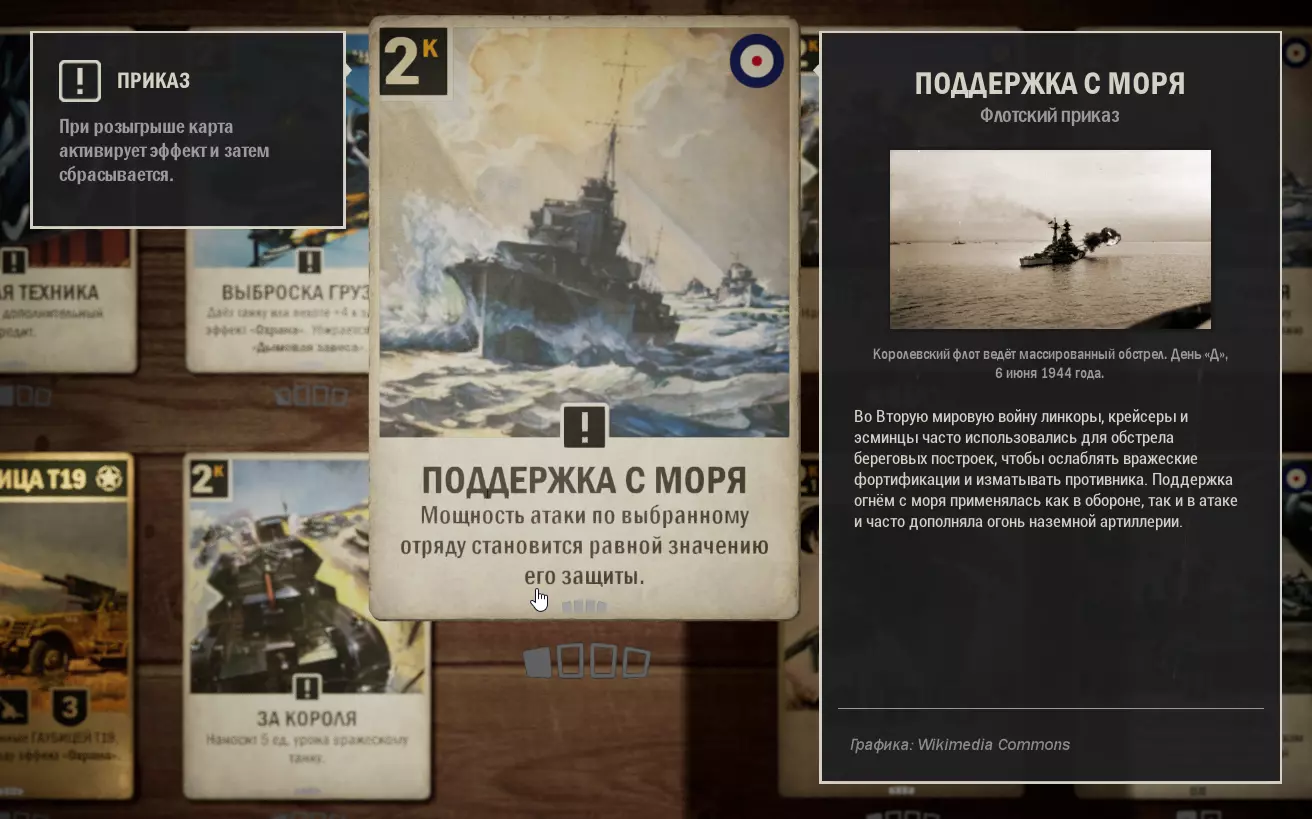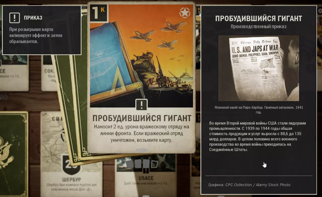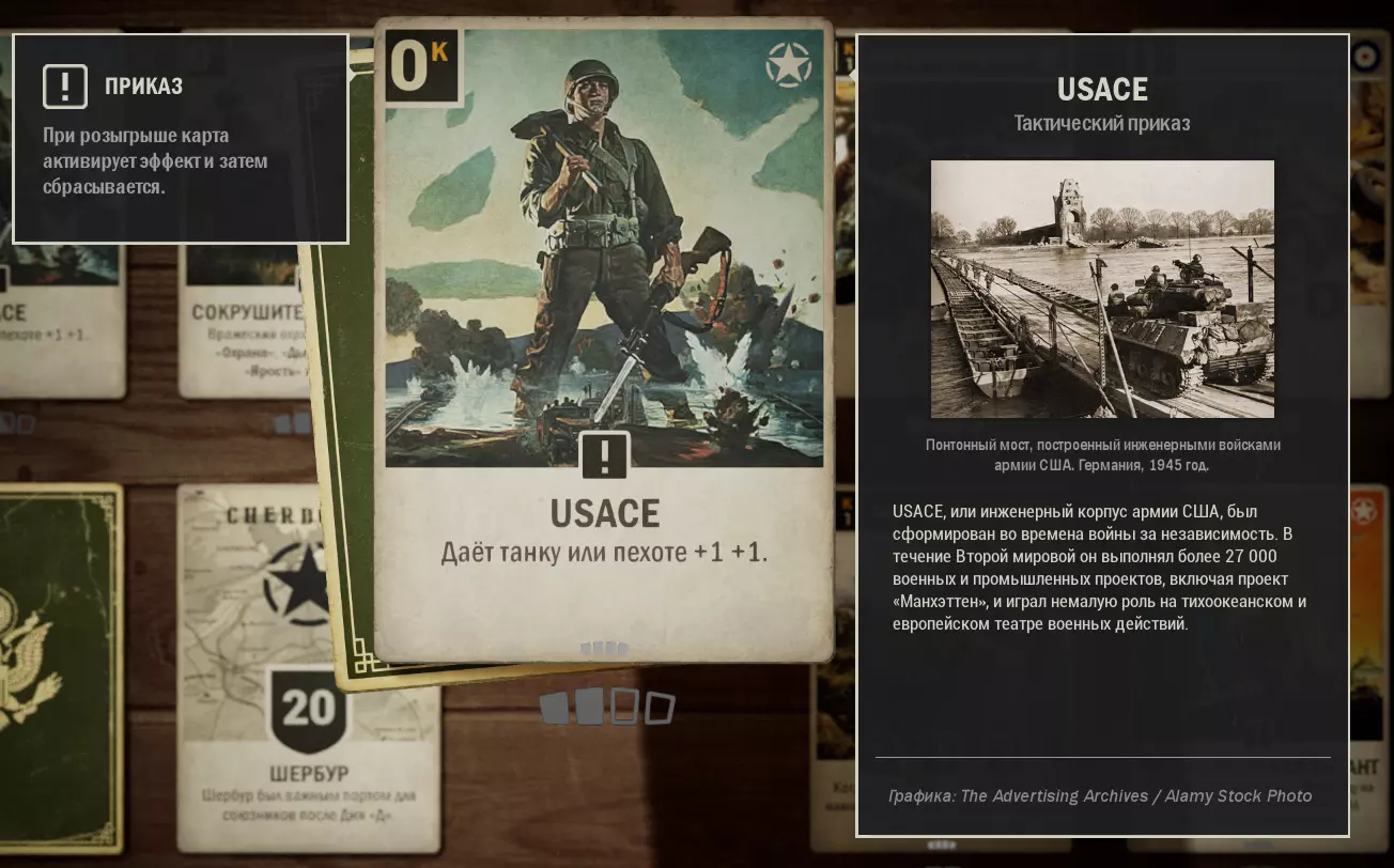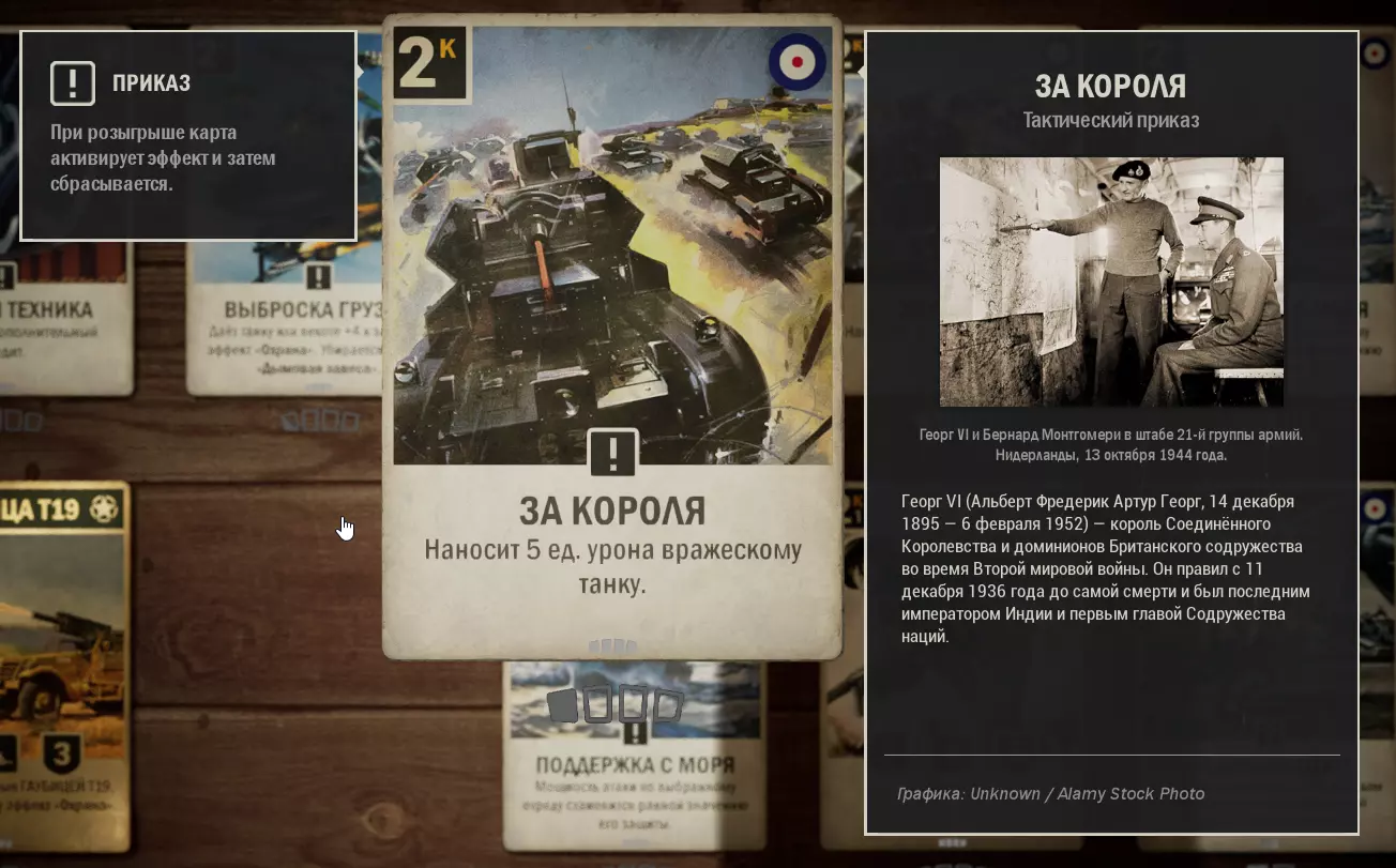 这里收集了美国与英国结盟的卡组。使用这套卡组可以顺利晋升至元帅军衔,无需担心通讯中断。适用于1.0版本。牌组内容 (0) 使用 - 2张 (1) 第463师 - 1张 (1) 苏醒的巨人 - 3张 (1) 高射炮火 - 1张 (1) M8灰狗装甲车 - 3张 (1) 拦截 - 1张 (2) 第17步兵团 - 1张 (2) 空投物资 - 1张 (2) T19榴弹炮 - 2张 (2) 为了国王 - 1张 (2) 舰炮支援 (2) 第5旅 - 1张 (3) 雷达 - 1张 (3) 护航队 - 2张 (3) 75毫米榴弹炮 - 1张 (3) M7牧师自行火炮 - 1张 (3) 第30团 - 2张 (3) 第3海军步兵团 - 1张 (4) 第8骑兵团 - 3张 (4) M4谢尔曼坦克 - 3张 (4) 第7团 - 1张 (4) 天降死亡 (5) 丘吉尔Mk 4坦克 - 3张 (6) F4U-1D海盗式战斗机 - 2张 (*) -为方便搜索,附上卡牌费用(内置关键词搜索功能的使用方式尚不明确,建议从列表中复制关键词)。X代表卡牌数量。需要说明的是,这套卡组并非特别强力。卡组是根据我个人现有的卡牌组合而成的,可以说它更偏向于平衡。在游戏的任何阶段都能让你感到舒适,但同样,卡组的表现会依赖于初始的卡牌选取。正如我所说,这套卡组没有独特的机制,但具备所有克制敌人或打出强力【隐藏文本】的元素。敌人经常会投降,尤其是当他们看到一整排被增益的炮兵时。 尽管这套卡组存在诸多缺点,我还是成功且设备无损地快速打到了【菲尔德】。 如果你认为有更好的卡牌可以替换,我很乐意看看。 所用卡牌的应用