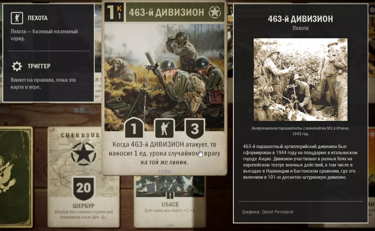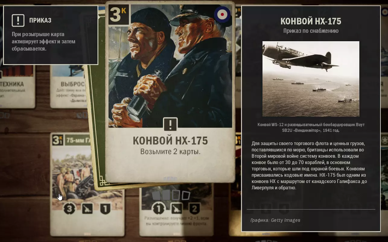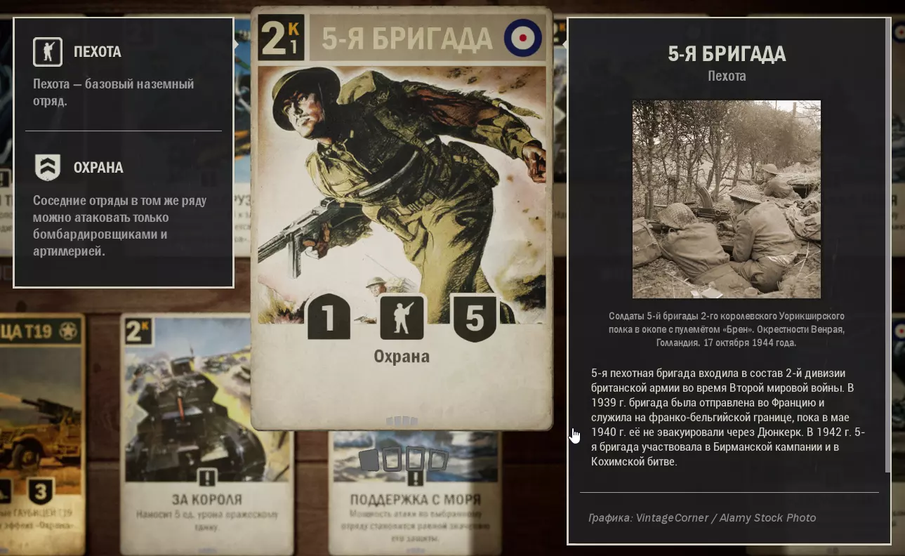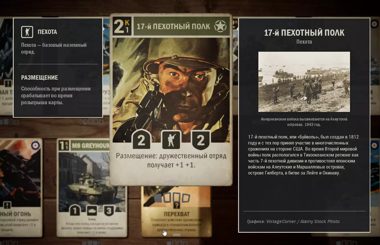 这里收集了美国与英国结盟的卡组。使用这套卡组可以顺利晋升至元帅军衔,无需担心通讯中断。适用于1.0版本。牌组内容 (0) 使用 - 2张 (1) 第463师 - 1张 (1) 苏醒的巨人 - 3张 (1) 高射炮火 - 1张 (1) M8灰狗装甲车 - 3张 (1) 拦截 - 1张 (2) 第17步兵团 - 1张 (2) 空投物资 - 1张 (2) T19榴弹炮 - 2张 (2) 为了国王 - 1张 (2) 舰炮支援 (2) 第5旅 - 1张 (3) 雷达 - 1张 (3) 护航队 - 2张 (3) 75毫米榴弹炮 - 1张 (3) M7牧师自行火炮 - 1张 (3) 第30团 - 2张 (3) 第3海军步兵团 - 1张 (4) 第8骑兵团 - 3张 (4) M4谢尔曼坦克 - 3张 (4) 第7团 - 1张 (4) 天降死亡 (5) 丘吉尔Mk 4坦克 - 3张 (6) F4U-1D海盗式战斗机 - 2张 (*) -为方便搜索,附上卡牌费用(内置关键词搜索功能的使用方式尚不明确,建议从列表中复制关键词)。X代表卡牌数量。需要说明的是,这套卡组并非特别强力。卡组是根据我个人现有的卡牌组合而成的,可以说它更偏向于平衡。在游戏的任何阶段都能让你感到舒适,但同样,卡组的表现会依赖于初始的卡牌选取。正如我所说,这套卡组没有独特的机制,但具备所有克制敌人或打出强力【隐藏文本】的元素。敌人经常会投降,尤其是当他们看到一整排被增益的炮兵时。 尽管这套卡组存在诸多缺点,我还是成功且设备无损地快速打到了【菲尔德】。 如果你认为有更好的卡牌可以替换,我很乐意看看。 所用卡牌的应用