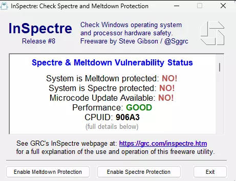 之后点击右上角的“应用更改”并重启电脑。 安装精简版Visual C++: 推荐安装(该组件已在您的系统中安装,但此版本精简了多余组件,不会产生任何负面影响,反而更好。直接开始安装即可)。 用于禁用处理器保护的程序 - InSpectre。用于禁用Windows 10/11的“熔断(Meltdown)和幽灵(Spectre)”安全补丁。如果你愿意牺牲一点安全性,或者确信自己的系统不会感染病毒,建议禁用这些补丁,因为它们会降低处理器性能(在某些处理器上,禁用后性能可能会大幅提升)。请按照截图所示修改2个参数,然后重启系统。随时可以恢复到之前的状态,只需将按钮切换为【禁用熔断保护】和【禁用幽灵保护】。