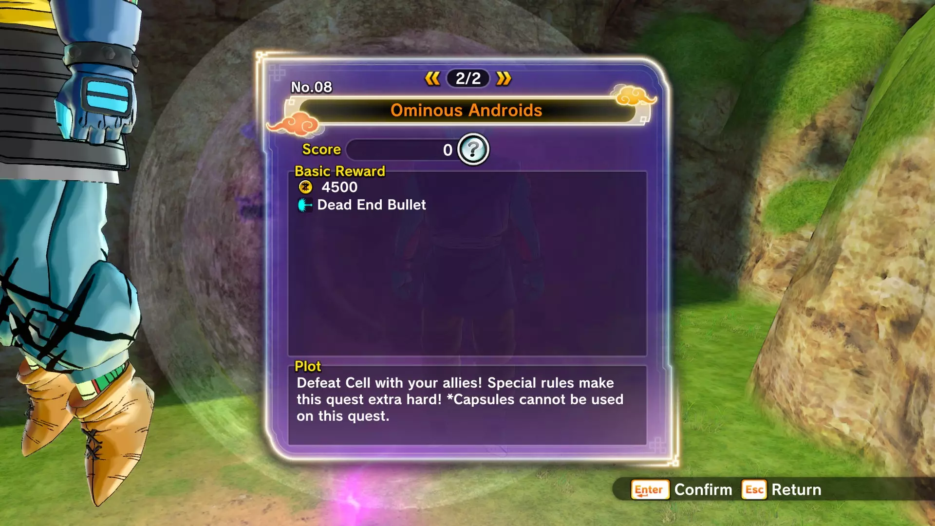 补充信息: 开始时,时间限制为3分钟。时间相当短,但对沙鲁造成一定伤害后,会开启通往荒地的传送门。 在荒地中,你可以击败(非常)弱小的沙鲁幼体。每击败一个沙鲁幼体,计时器就会增加30秒。如果你击杀速度快且有耐心,会发现增加的时间会从30秒提升到40秒,再到50秒。一旦计时器达到9分钟,一个同样弱小的人造人17号就会出现,击败他可获得1分钟的时间。 击败人造人17号后,不会再出现其他敌人,你可以返回去继续攻击沙鲁。 虽然不能100%确定是否相关,但当我将计时器时间一直延长且自身未受太多伤害后,我获得了Z评分以及沙鲁的技能。