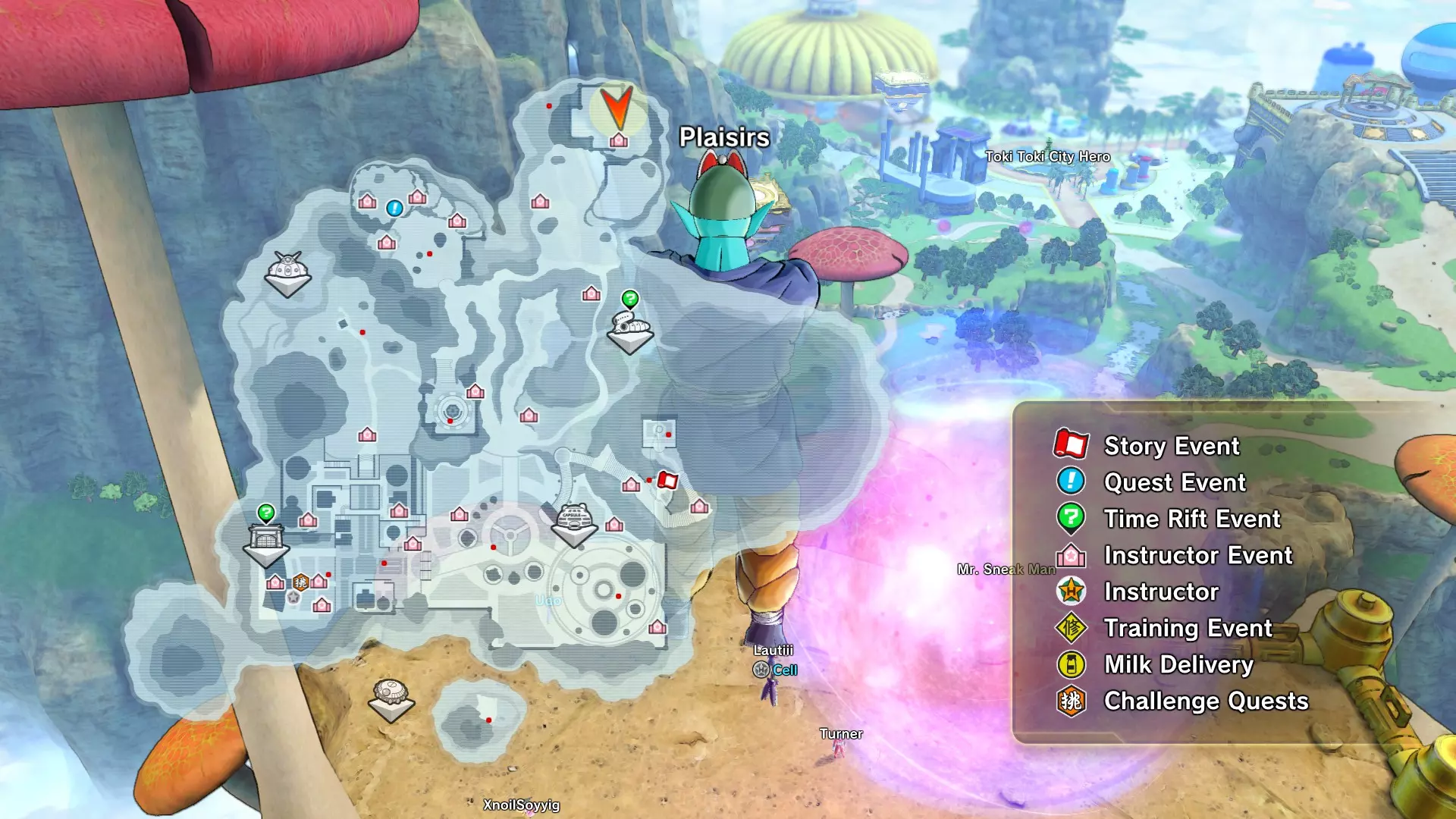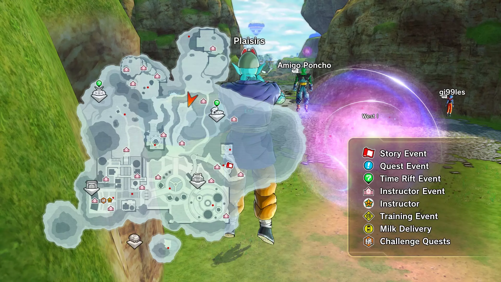 额外信息: 从这个任务开始,你将面临一个新挑战(你在教程2中见过),那就是必须一路战斗回到主要敌人那里。 在某个阶段,弗利萨会把你们中的5个人派往其他地点(是的,在这种情况下,会有一个人独自对抗弗利萨或其他任何 boss)。如果你被困在弗利萨那里,可以尝试打破阻挡传送门的【邪恶之石】,但这可能很困难,因为你是弗利萨唯一的目标。这些【石头】可以用普通攻击、任何气攻击或打击类攻击/技能摧毁。 如果你被派往其他区域,你将面对一个你之前或在第一部游戏中遇到过的敌人的【弱化版本】。要激活传送门并回到弗利萨那里,你必须击败那个对手。现在查看全局地图: