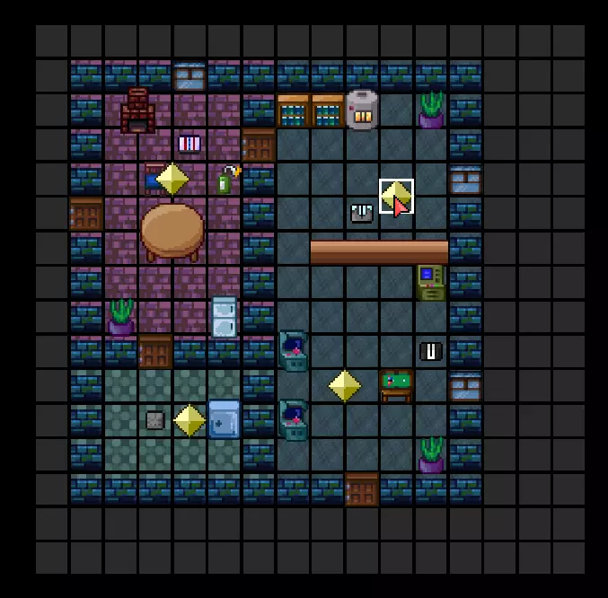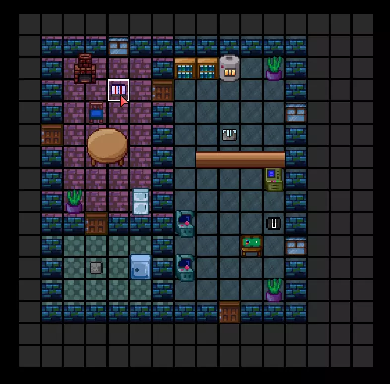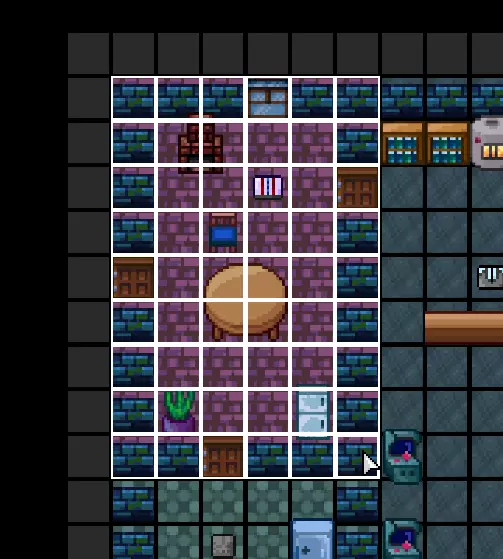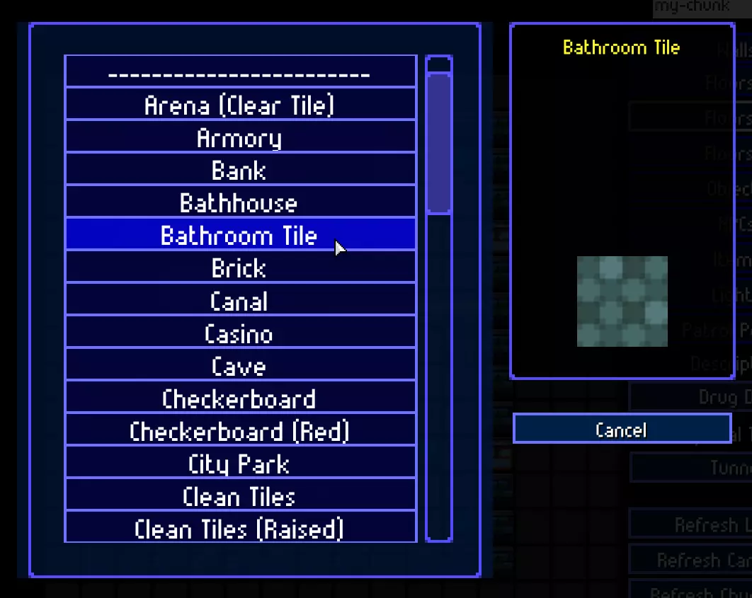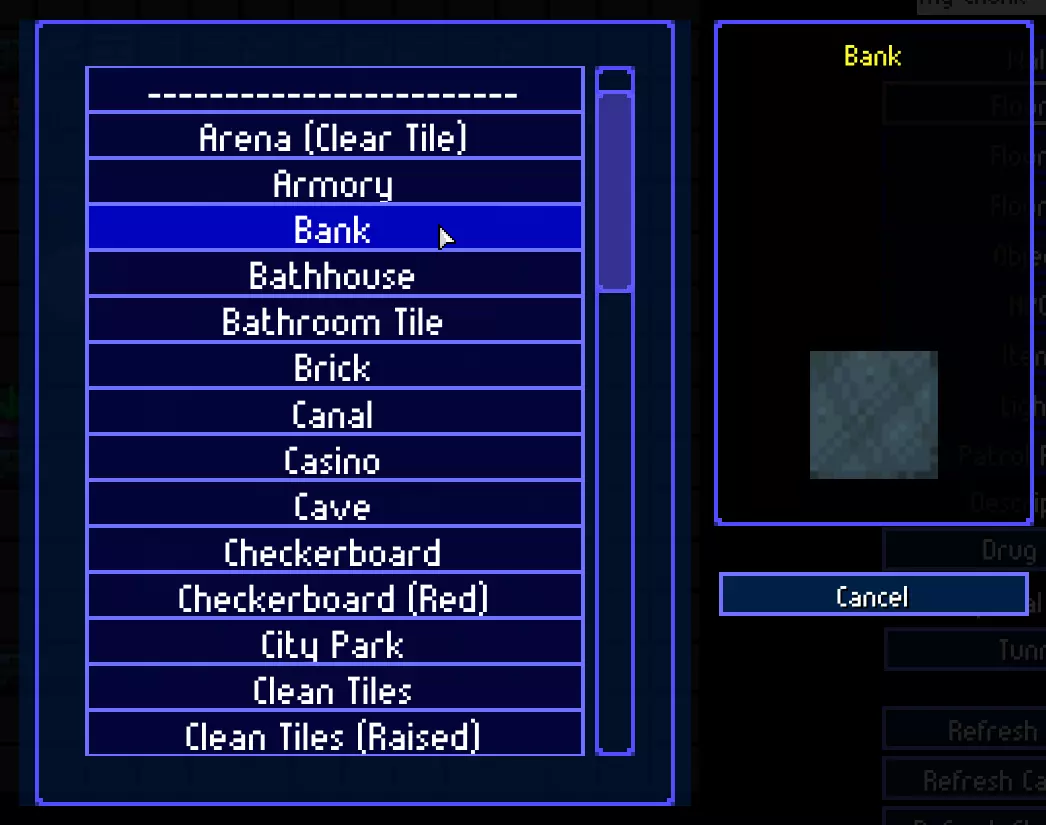 现在我们来放置额外的地板类型(如地毯、浴室瓷砖、水、坑洼和传送带)。选择【地板2】工具,点击【名称】框并选择所需的地板类型。