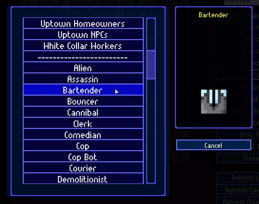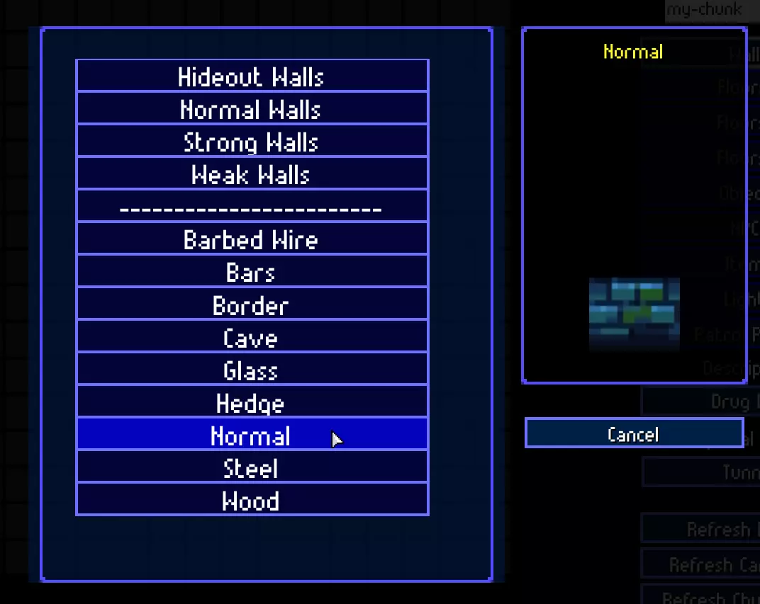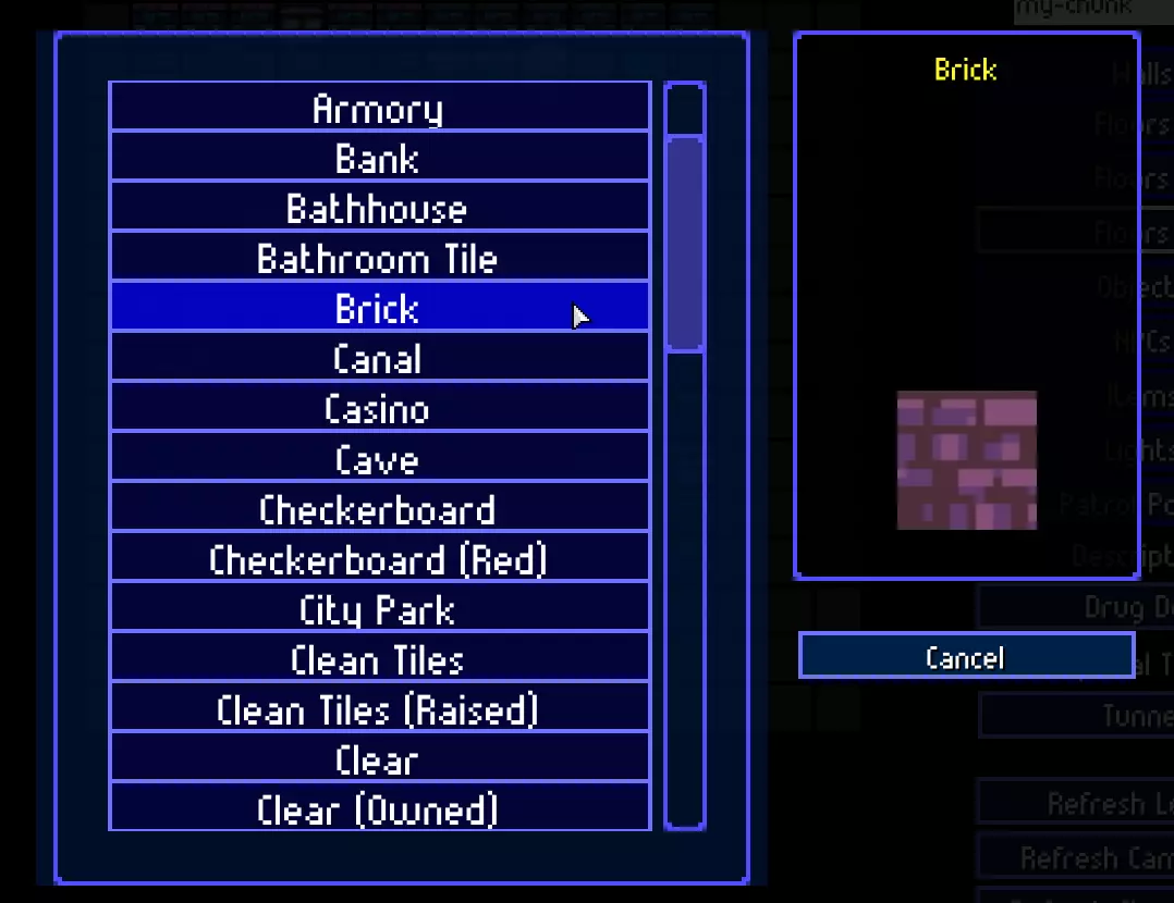让我们为区块添加描述。它会影响部分物体设置、NPC行为以及关卡中的区块生成。例如,洞穴和农场只会在公园区域生成,毒品窝点不会在市中心区域生成,等等。