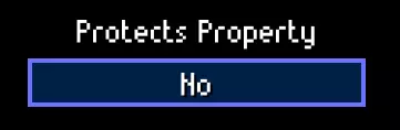 【保护财产】决定角色对玩家进入其领地时的反应。【敌对】:NPC会攻击玩家;【厌烦】:NPC会要求玩家离开,若玩家不离开,NPC将攻击玩家;【无】:NPC不会采取任何行动(用于公共场所)。