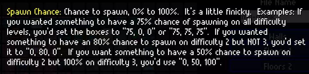 【难度】决定NPC生成时携带的武器、容器中生成的战利品,以及部分物品的生成概率。