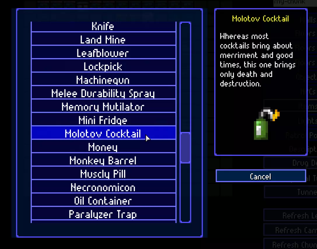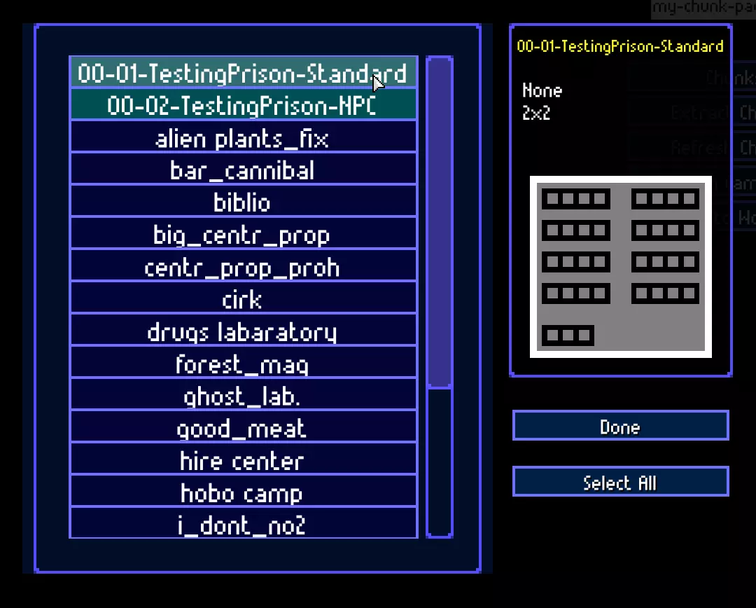 你也可以设置区块包的缩略图。只需将.png、.jpg或.gif格式的图片放入目录“C: Users <用户名> Documents Streets of Rogue ChunkPacks <区块包名称>”中即可。