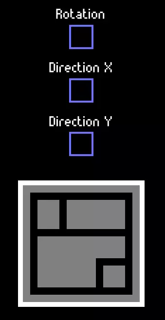 “旋转”将区块逆时针旋转90度。“X方向”将区块左右翻转(沿Y轴镜像)。“Y方向”将区块上下翻转(沿X轴镜像)。