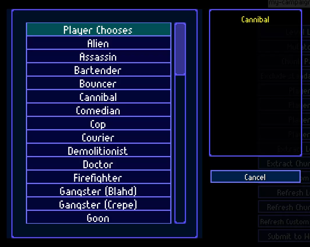 战役存档保存在此文件夹:“C: Users <你的用户名> Documents Streets of Rogue Campaigns”。保存战役后,你可以删除战役中使用的区块包、角色和关卡,因为它们已保存在战役文件中。你可以稍后使用【提取关卡】、【提取区块包】和【提取自定义角色】功能将它们提取出来。