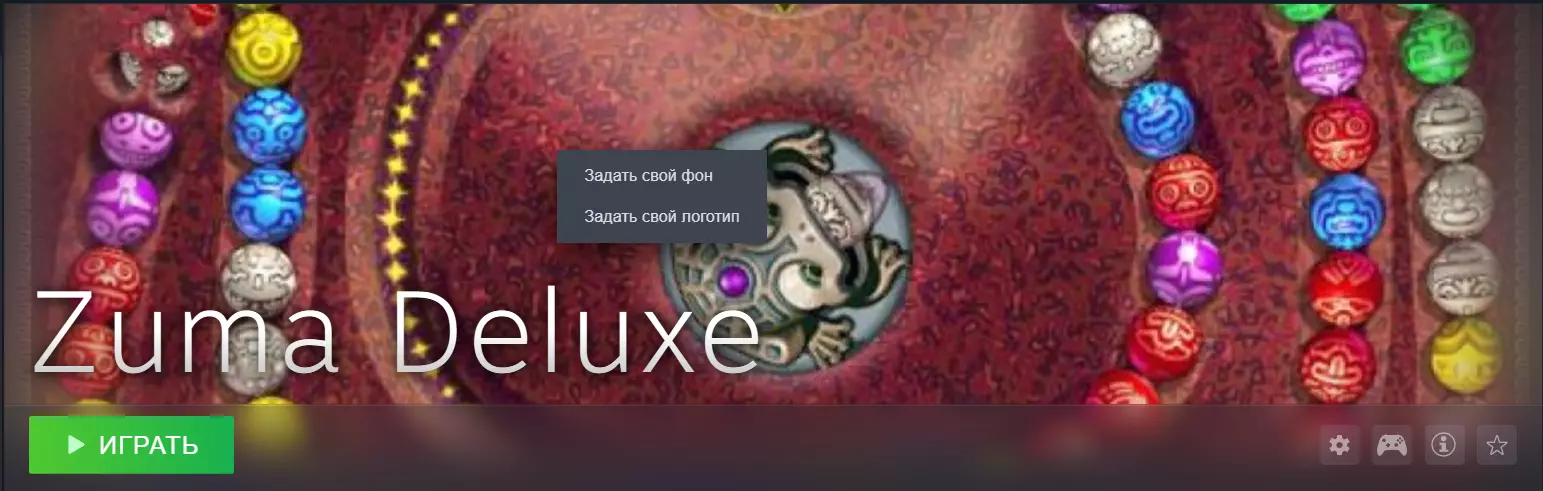 您的游戏外观会显示为截图中的样子。由于《祖玛豪华版》在库中没有外观,取而代之的是带有肥皂背景的“Zuma Deluxe”难看标志。要更改外观,请将鼠标光标悬停在游戏背景上,然后右键单击。