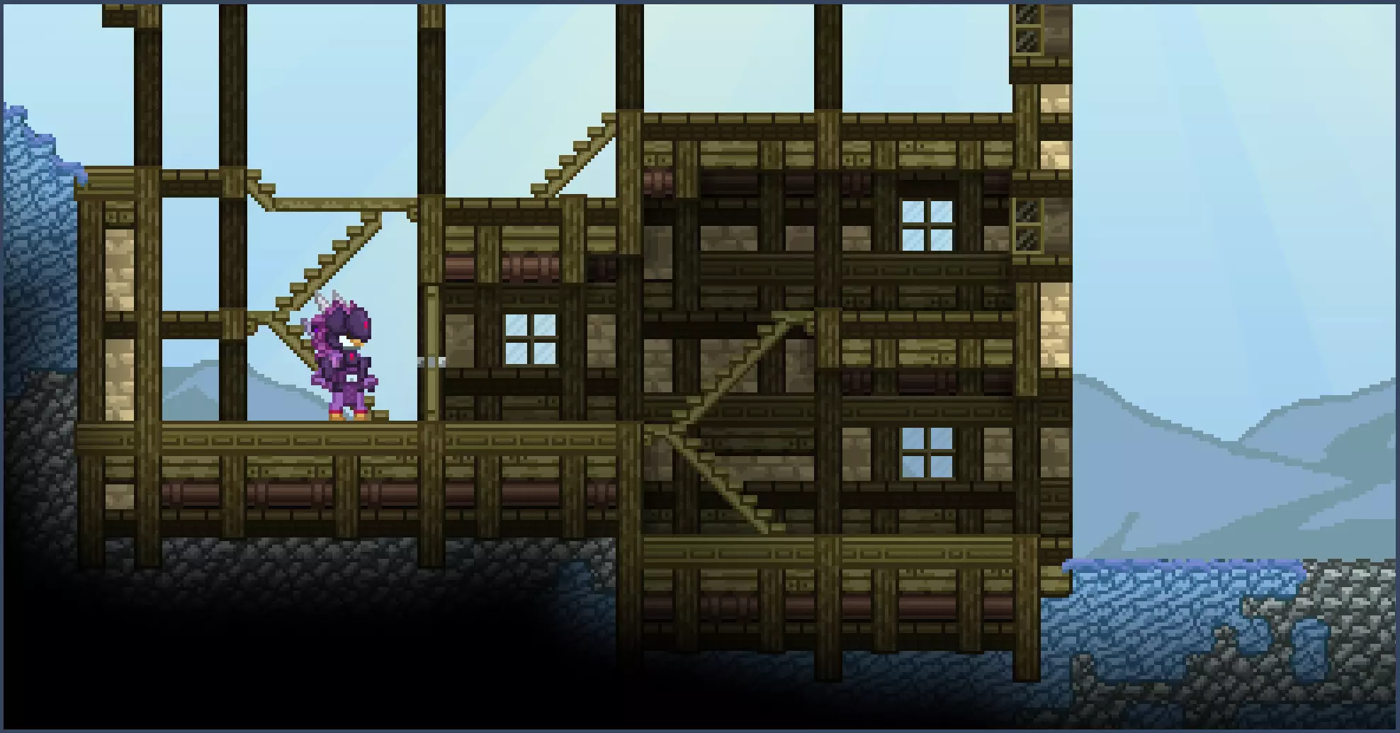 建造楼梯时,我会特意确保大部分区域角色无需跳跃就能到达。你不一定非要这样做,有些建筑即使不按我这种方式设计楼梯,看起来也完全没问题,但这是我个人风格的一部分。 墙壁、窗户和一楼