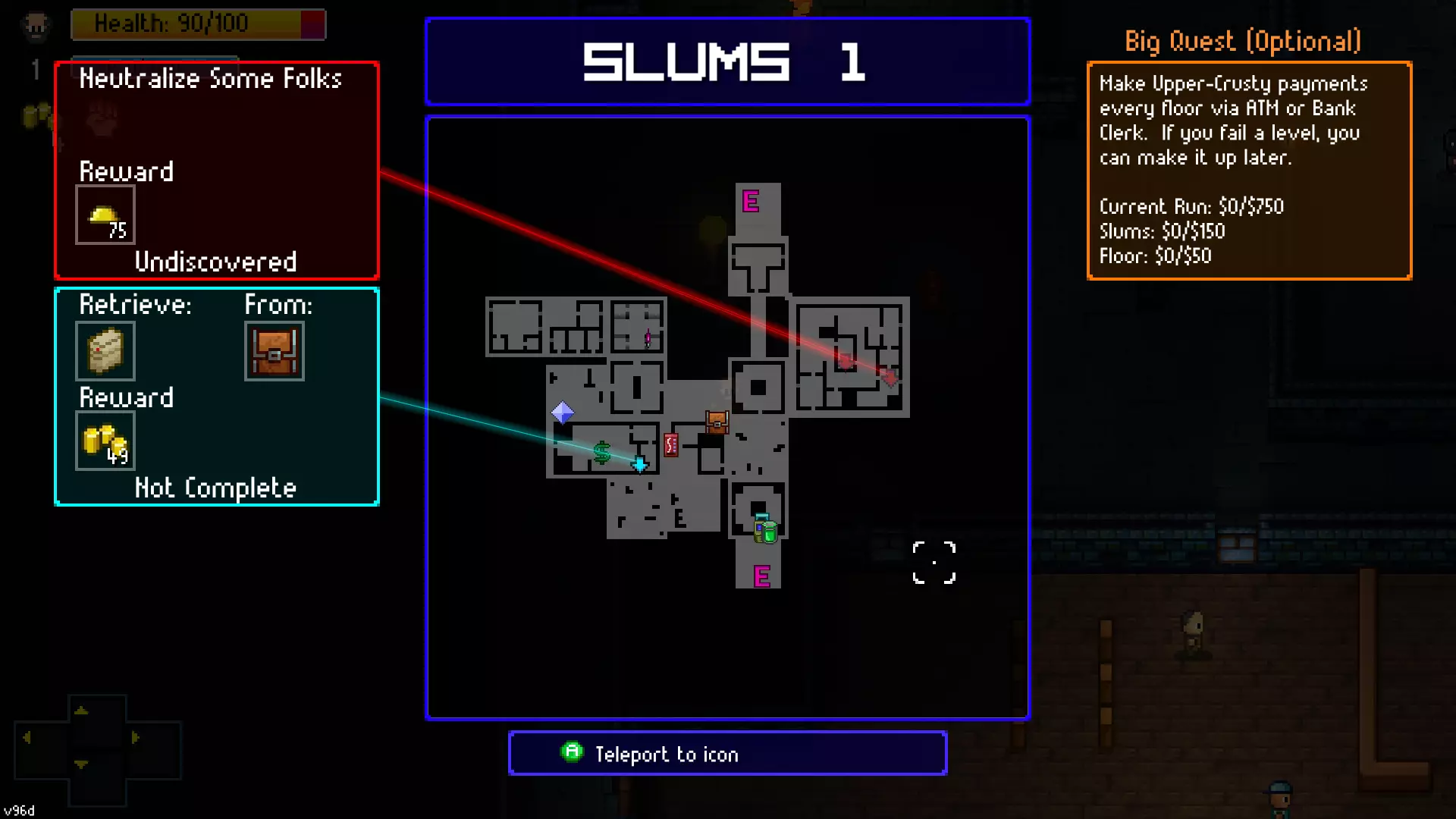 1-1关卡要求 你需要通过5个贫民窟关卡才能到达工业区。本指南将介绍如何使用5个不同角色做到这一点,以便你在每次新游戏开始时都能从工业区起步。 首先,在贫民窟的每个新关卡,按Y键(本指南使用Xbox手柄)调出你的关卡要求。