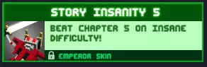 【成就】Story Insanity:在疯狂难度下通关第5章! 要在疯狂难度下通过第5章,方法和第4章类似。操控飞船时,先用导弹摧毁护盾,再使用激光攻击;面对皇帝的飞船,先消灭小型僚机,然后用多发导弹和激光攻击皇帝飞船即可。另外,不要忘记在飞船模式下可以使用喷气背包进行闪避,这一点和第4章相同。 boss战时,先切断它的腿部,再破坏手臂,最后彻底击败它。矩阵部分应该能顺利通过,但boss的第二阶段会更难。注意躲避所有攻击,并使用冲刺技能。先砍断他的腿,再砍断他的手臂,这样他就追不上你,也无法使用剑和锤子了。击落那些给他提供护甲的助手。最后,你杀死皇帝,拯救人类。奖励:【Emperor】皮肤