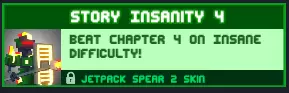 【成就】疯狂故事:在疯狂难度下完成第四章! 要在疯狂难度下通过第四章,不要害怕死亡,相反,通过死亡来进入拥有你方便升级的机器人,再次存活到检查点,然后消灭所有人。 奖励:“Jetpack spearman Mk2”皮肤