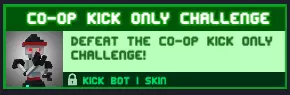 合作模式仅用踢击挑战 完成合作模式仅用踢击挑战! 这是一个有点难度的考验,带有能量的喷气背包将是你最好的伙伴,提升更多敏捷属性,其余方面你可以使用克隆体或护甲。 奖励:【Kick bot Mk1】皮肤