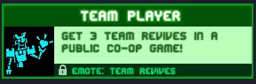 团队合作 在公开合作游戏中完成3次团队复活! 只需进入联合无尽模式或联合试炼,复活3名盟友,即3名盟友死亡时你处于存活状态,完成关卡即可。 奖励:【团队复活】表情