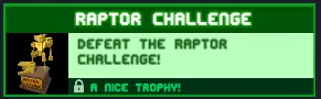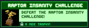 迅猛龙疯狂挑战 完成迅猛龙疯狂挑战! 与迅猛龙测试相同,只是难度略高,战术一致 奖励:一个精美的奖杯